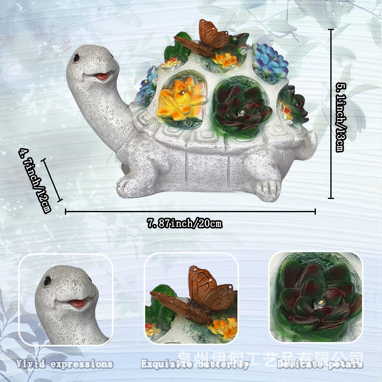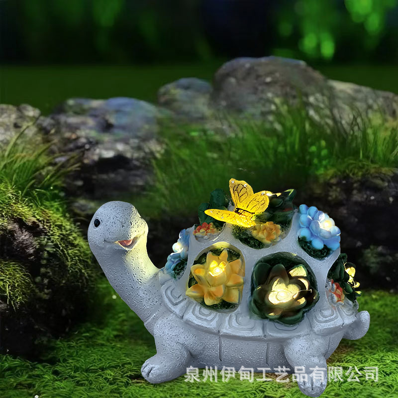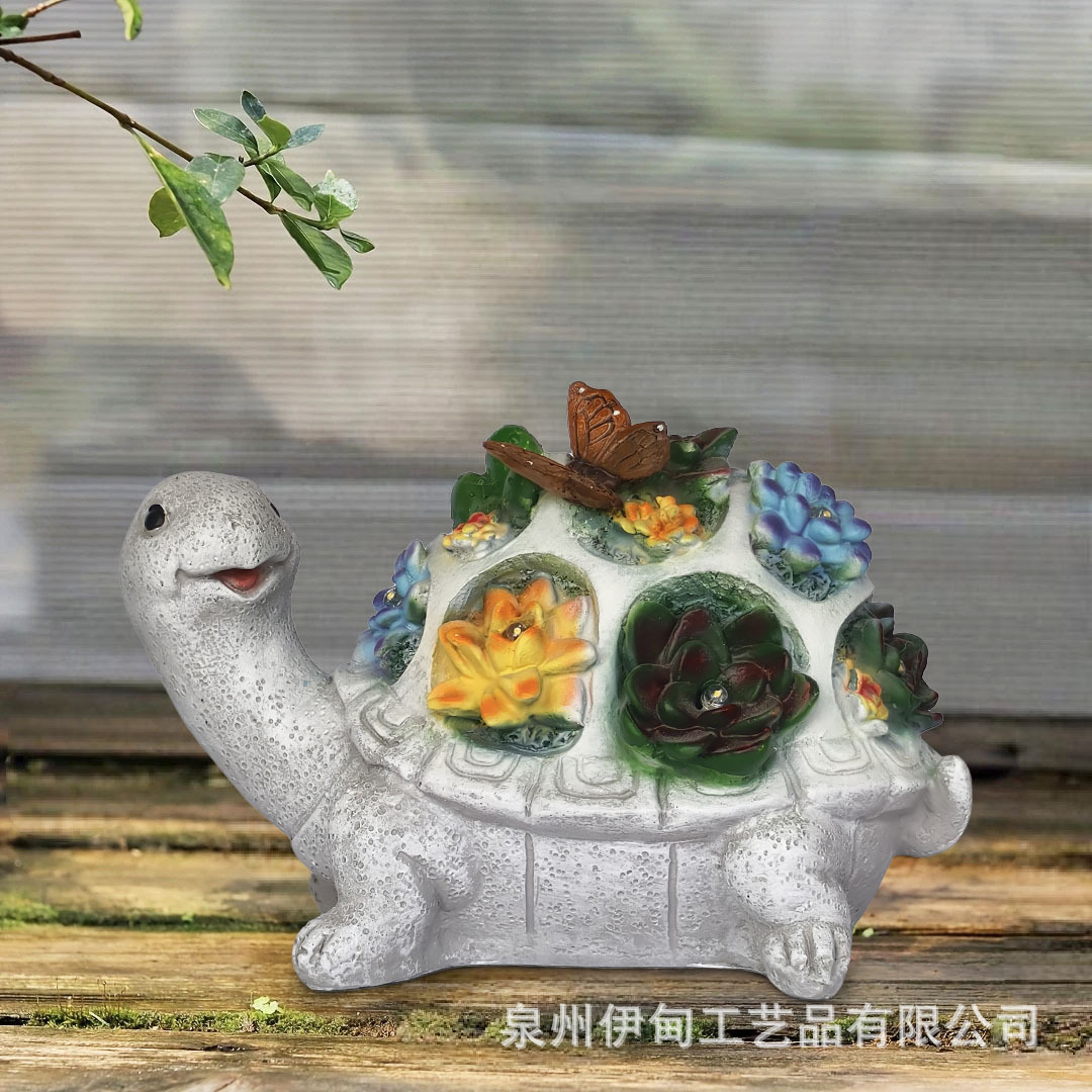국경 간 야외 안뜰 태양 조각 조명 거북이 다육 나비 장식품 B&B 장식 수지 공예품