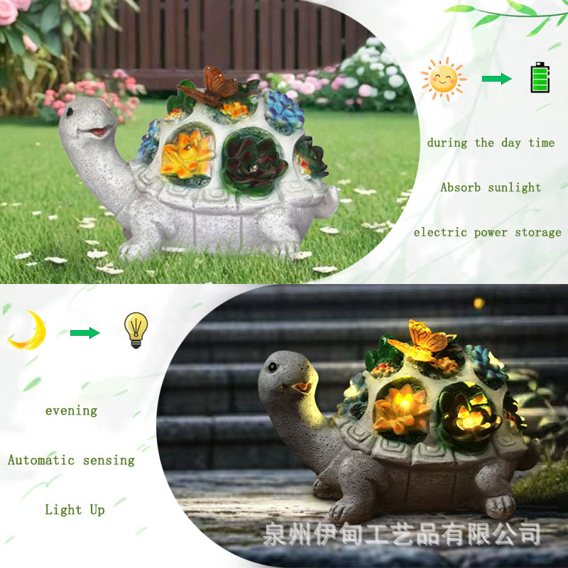 국경 간 야외 안뜰 태양 조각 조명 거북이 다육 나비 장식품 B&B 장식 수지 공예품스토어 가기