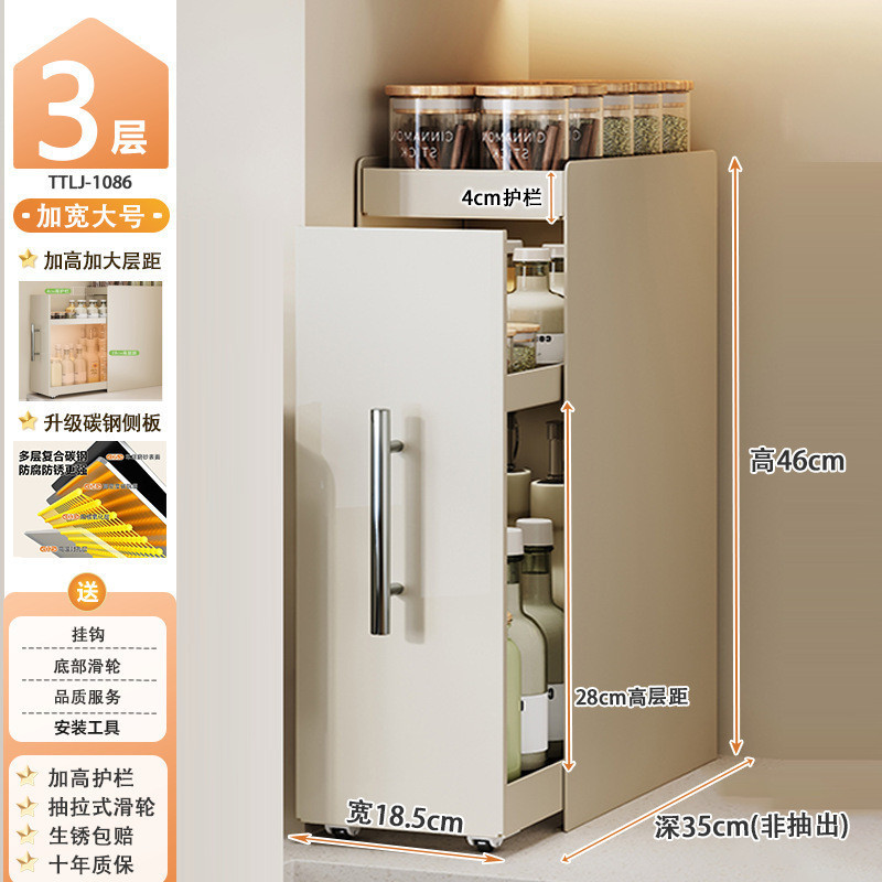 • ◑크림 화이트 분리형 풀아웃 조미료 캐비닛 [소형] 3층 조리대 세트 - 두꺼운 탄소강, 강화된 내하중성, 녹 방지 및 내마모성◑