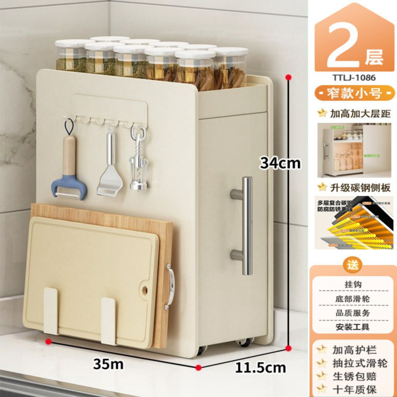 • ◑크림 화이트 분리형 풀아웃 조미료 캐비닛 [소형] 2층 조리대 전체 세트 - 두꺼운 탄소강, 강화된 내하중성, 녹 방지 및 내마모성◑
