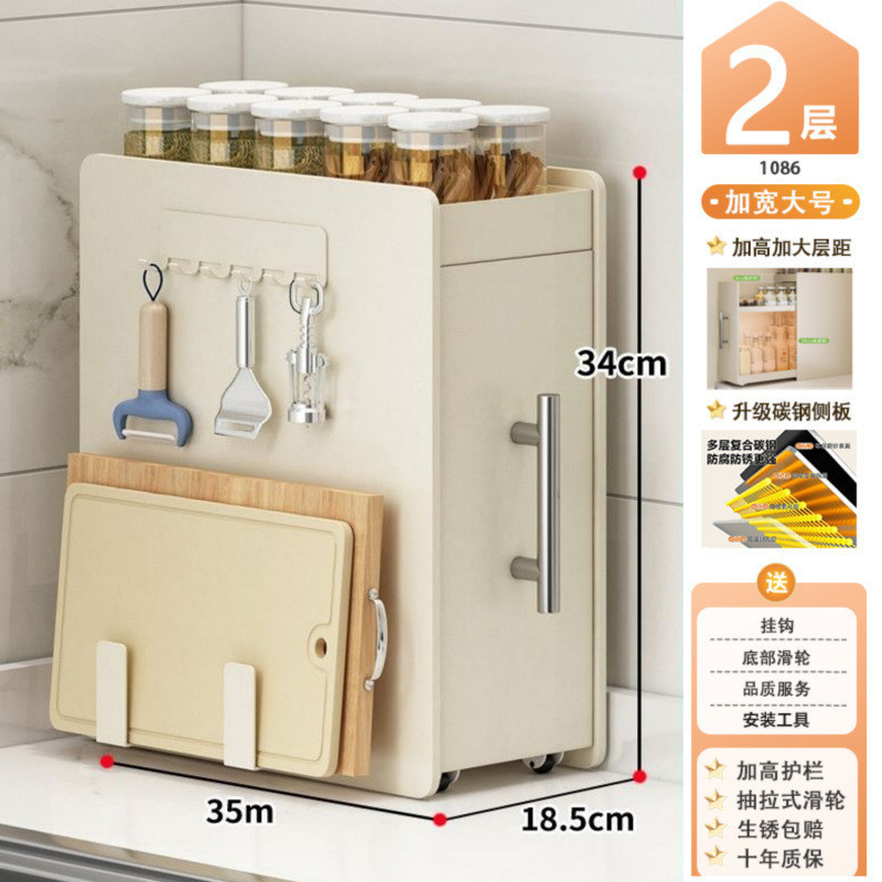 • ◑크림 화이트 분리형 풀아웃 조미료 캐비닛 [대형] 2층 조리대 전체 세트 - 두꺼운 탄소강, 강화된 내하중, 녹 방지 및 내마모성◑