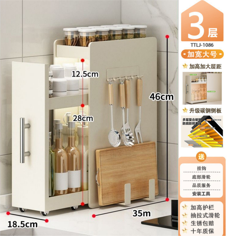 • ◑ 크림 화이트 분리형 풀아웃 조미료 캐비닛 [대형] 3층 조리대 전체 세트 - 두꺼운 탄소강, 강화된 내하중성, 녹 방지 및 내마모성 ◑