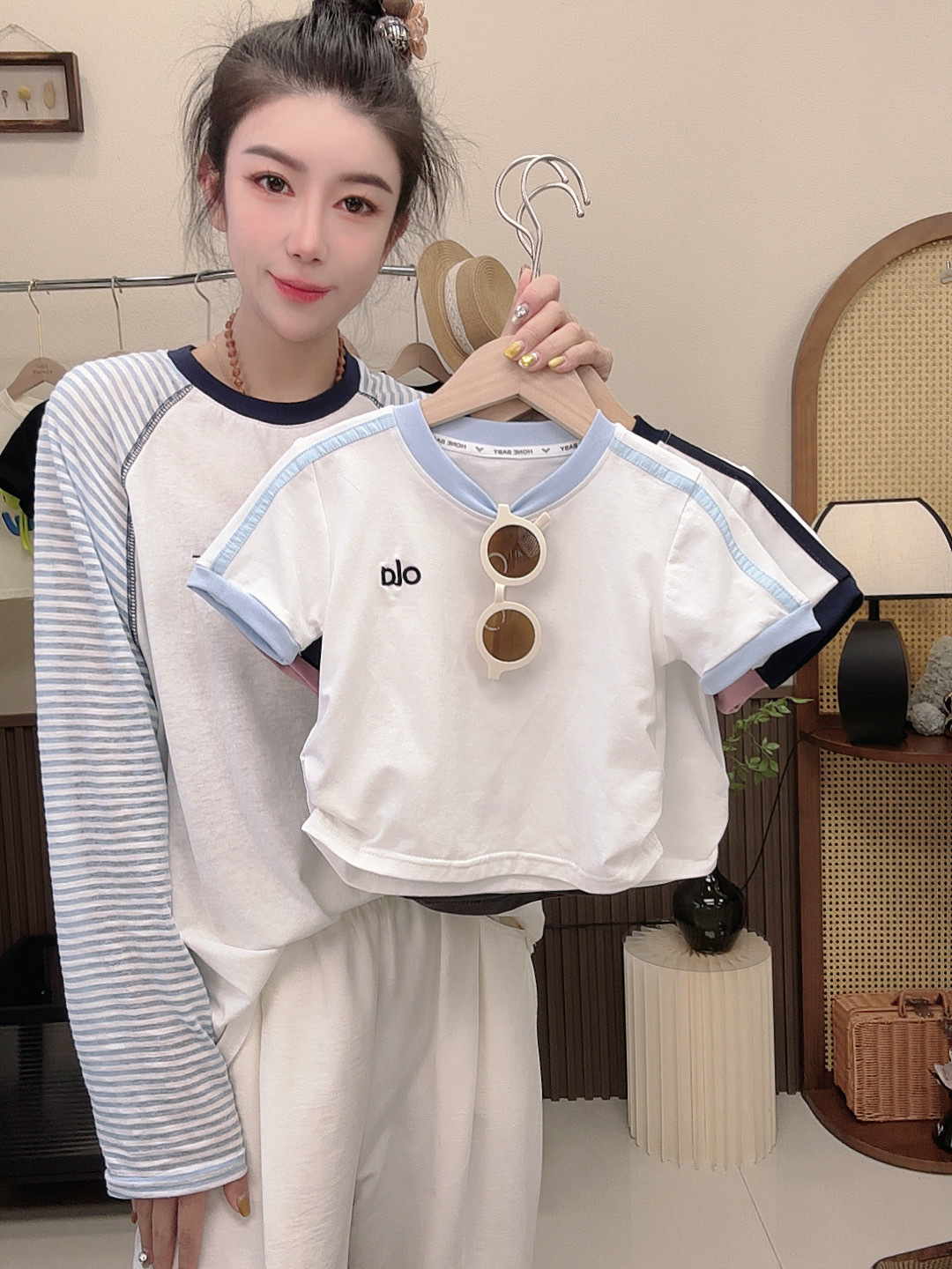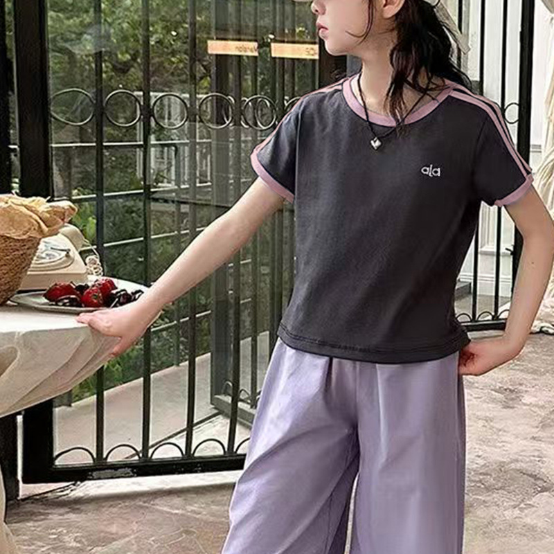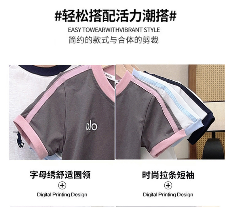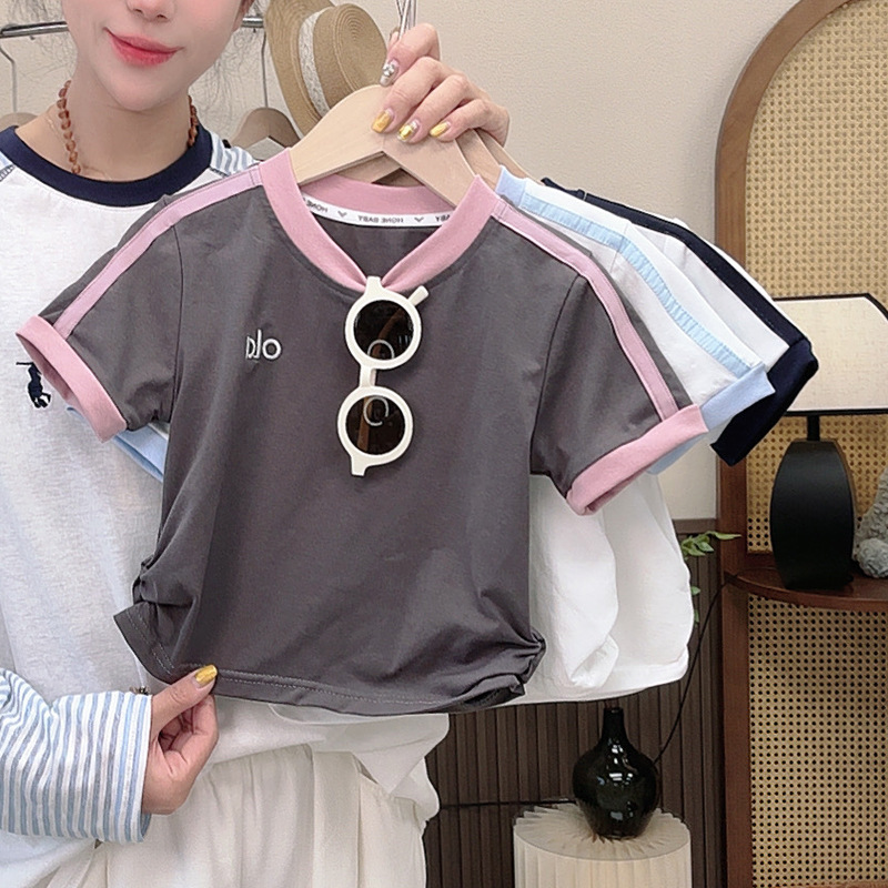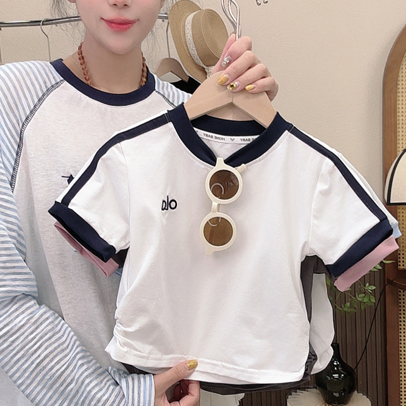여자 여름 반팔 티셔츠 2025 새로운 스타일 아기 소녀 유행 자수 꽃 라운드 넥 반팔 코튼 탑스토어 가기