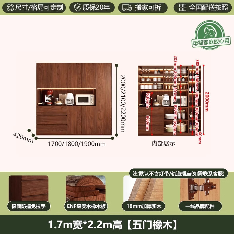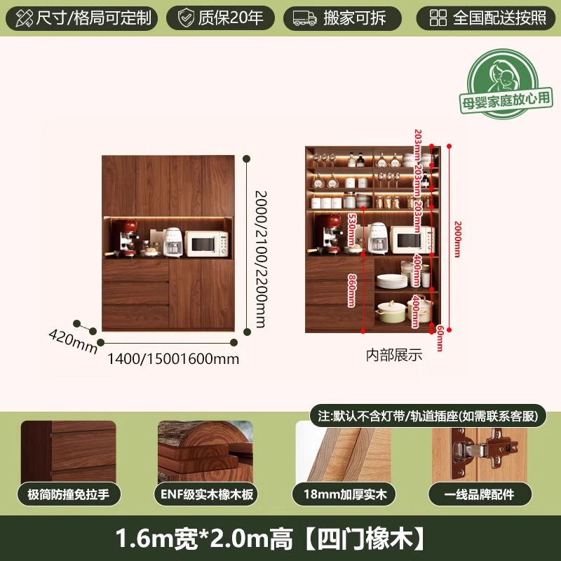ENF 등급 단단한 참나무 찬장 거실 홈 유리 그릇 캐비닛 벽에 통합 된 높은 두꺼운 보드 보관 캐비닛