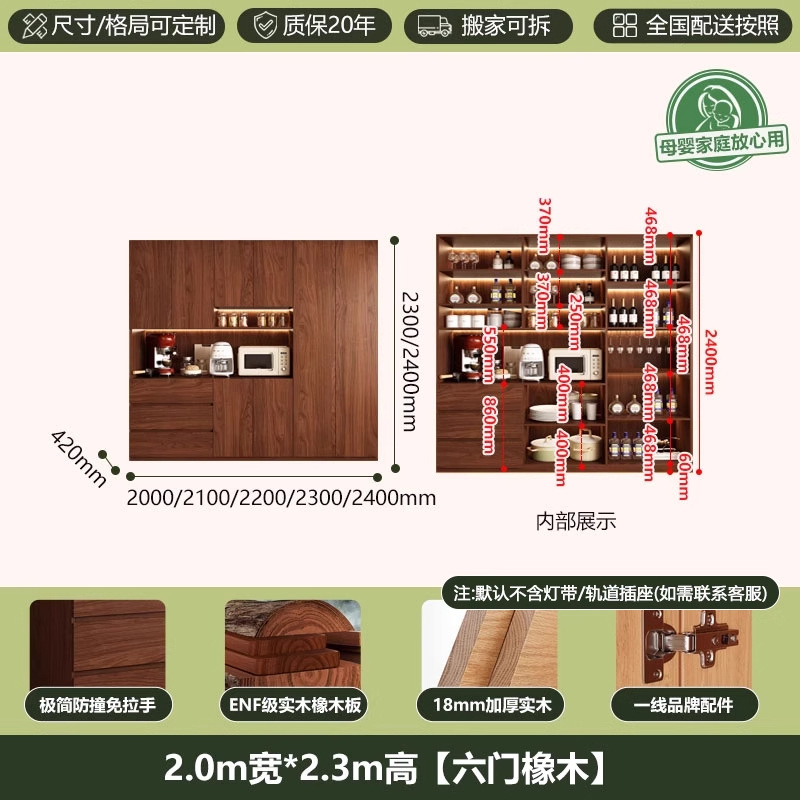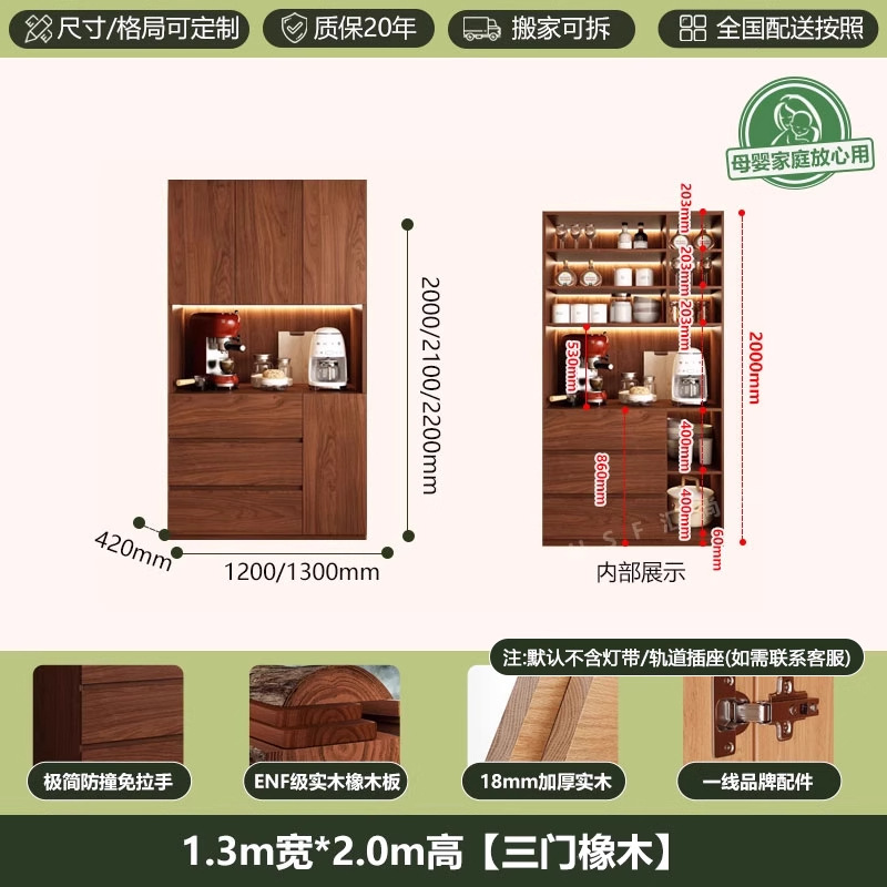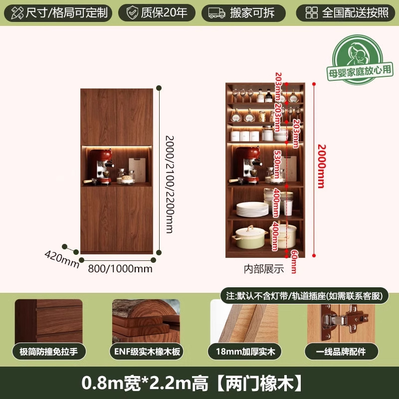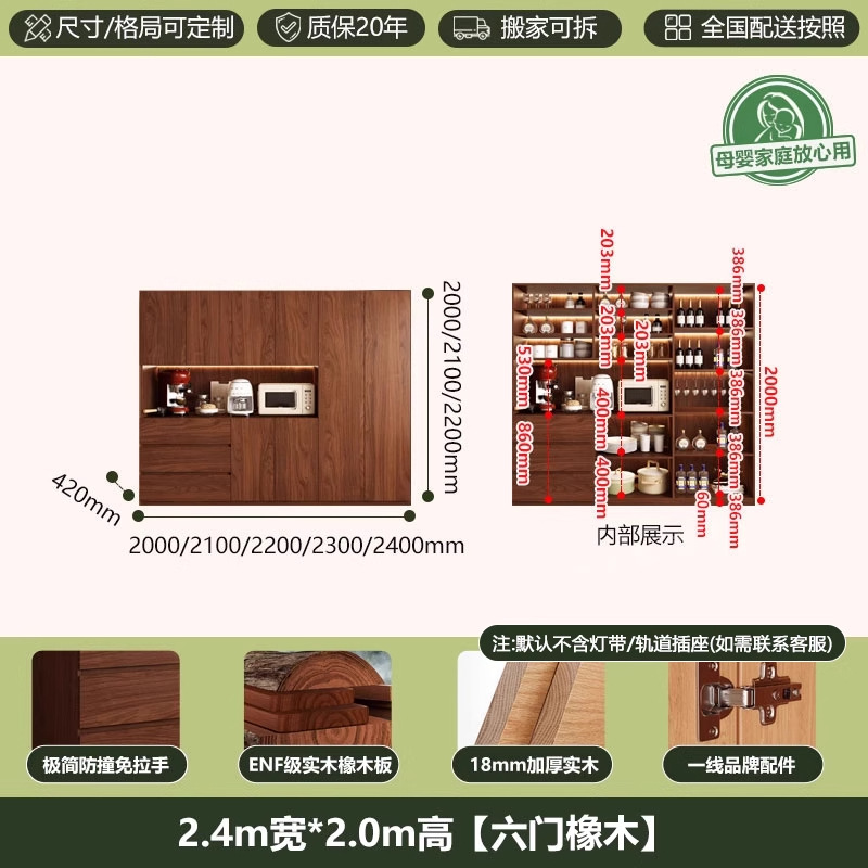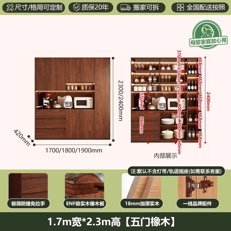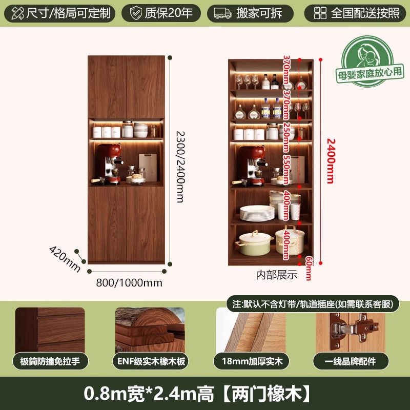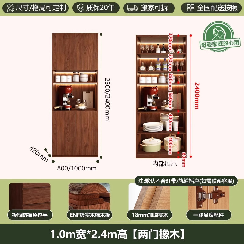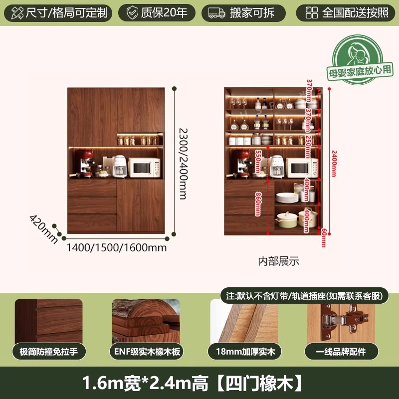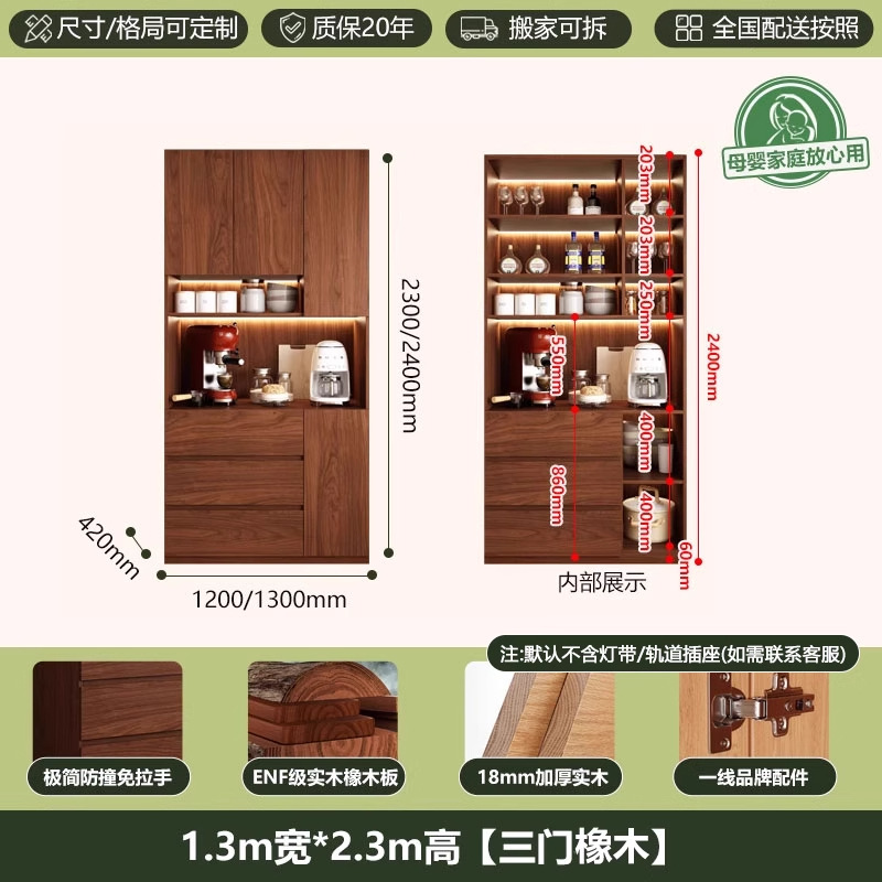 ENF 등급 단단한 참나무 찬장 거실 홈 유리 그릇 캐비닛 벽에 통합 된 높은 두꺼운 보드 보관 캐비닛스토어 가기