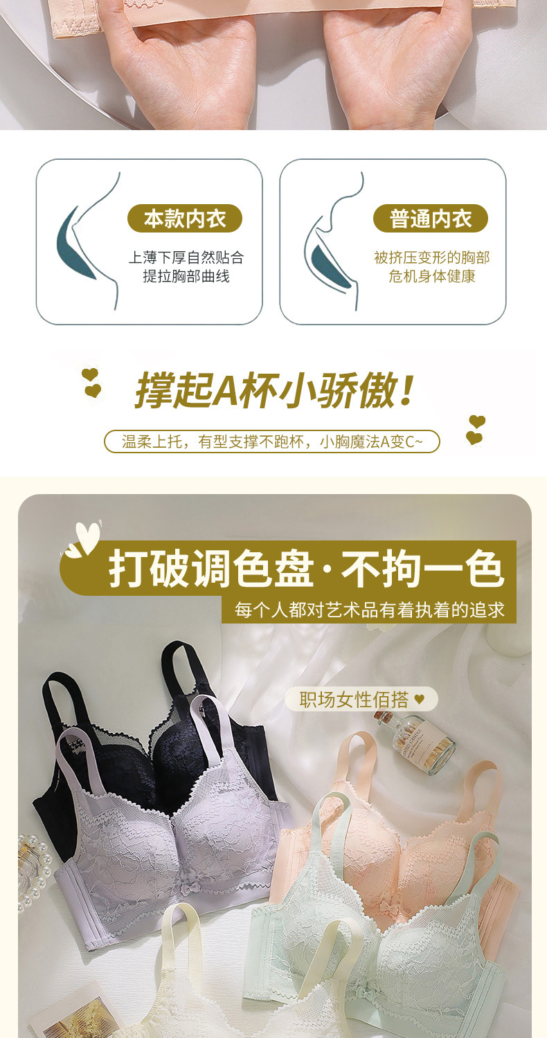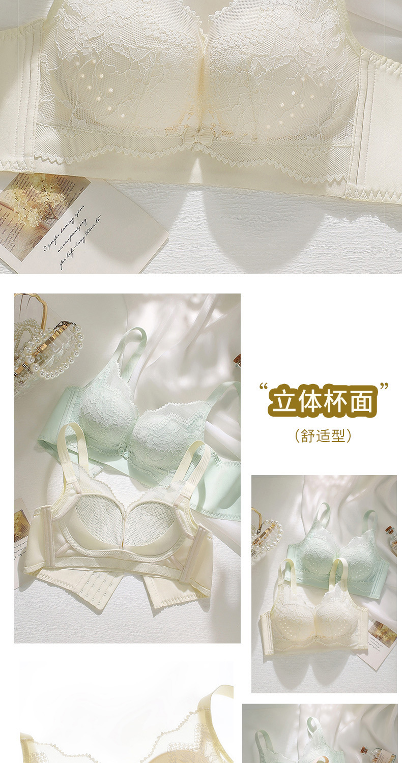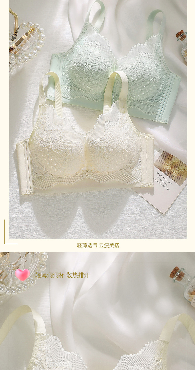 여성용 레이스 와이어 프리 홀 컵 속옷, 처짐 방지 조절 가능, 중간 두께 컵, 따뜻한 느낌의 푸쉬업 브라스토어 가기