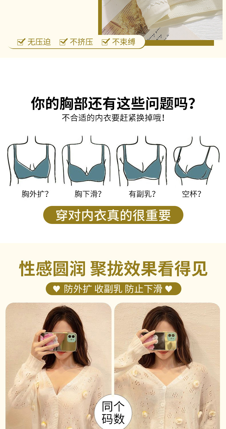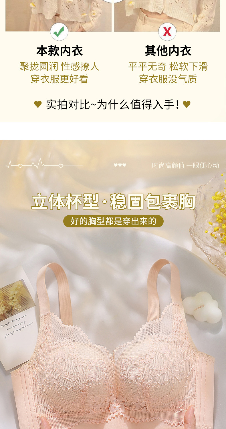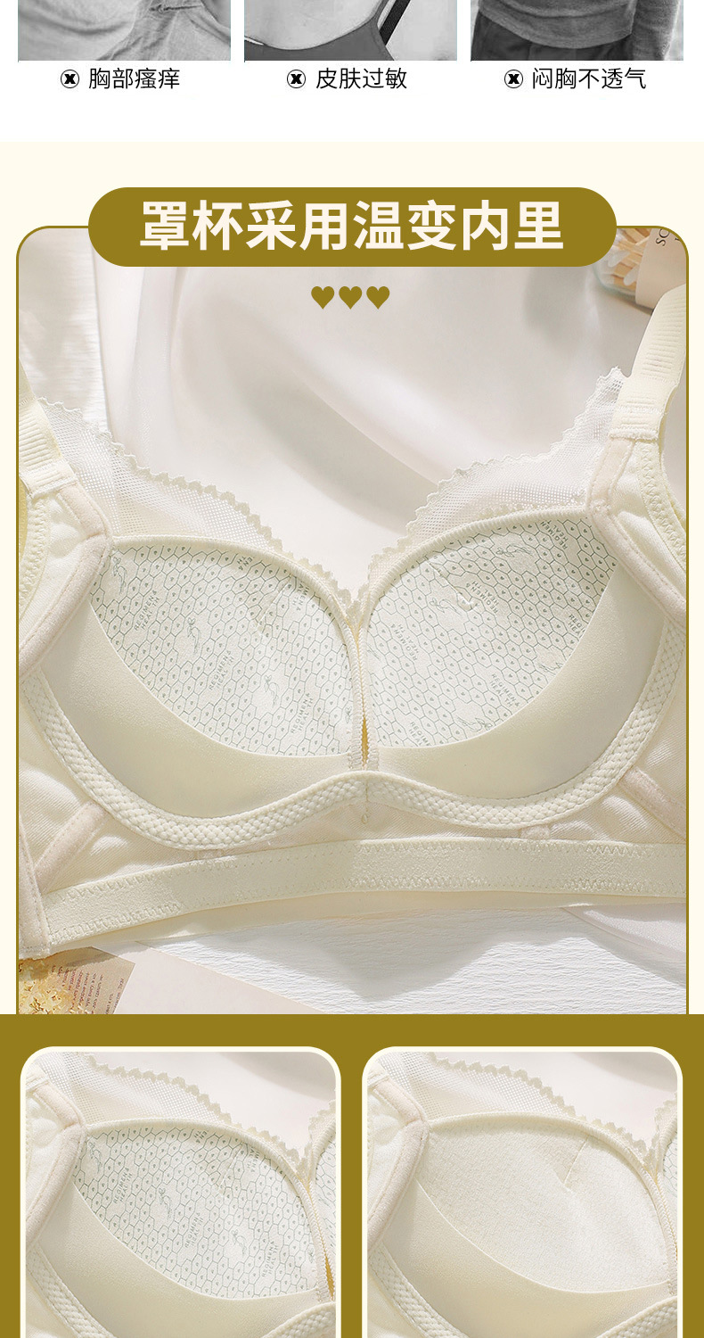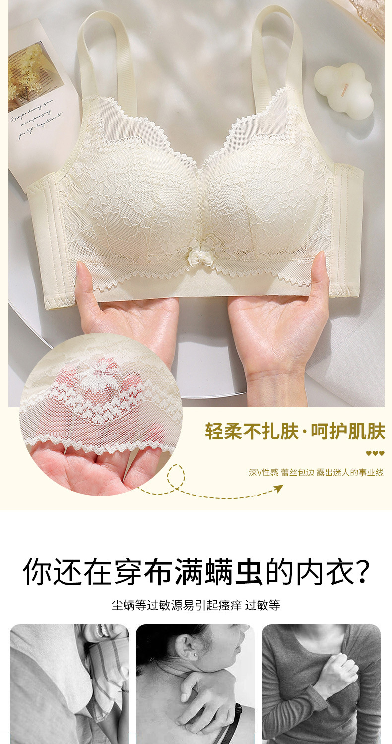 여성용 레이스 와이어 프리 홀 컵 속옷, 처짐 방지 조절 가능, 중간 두께 컵, 따뜻한 느낌의 푸쉬업 브라스토어 가기