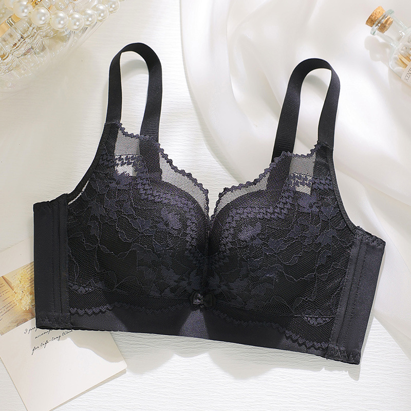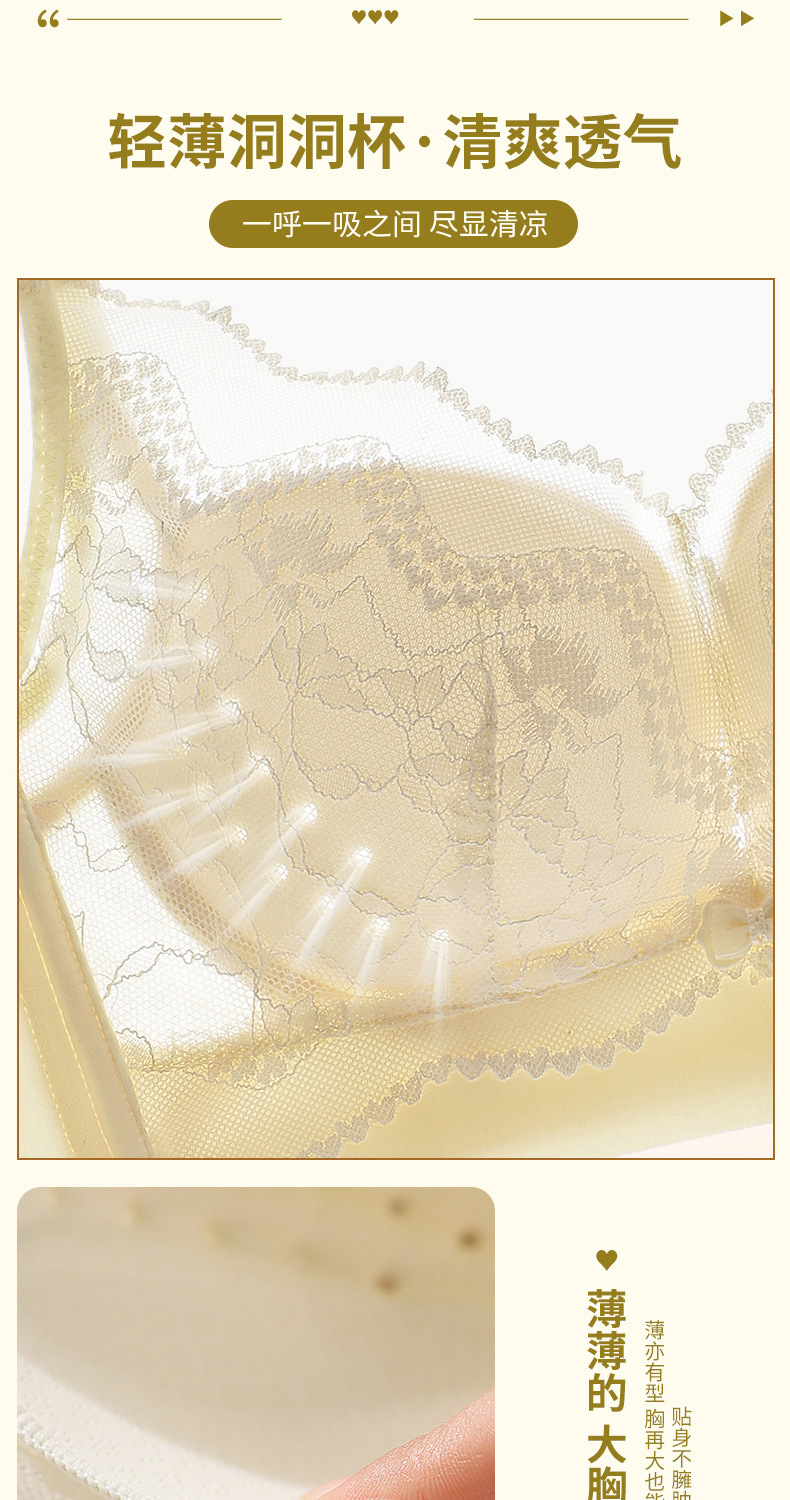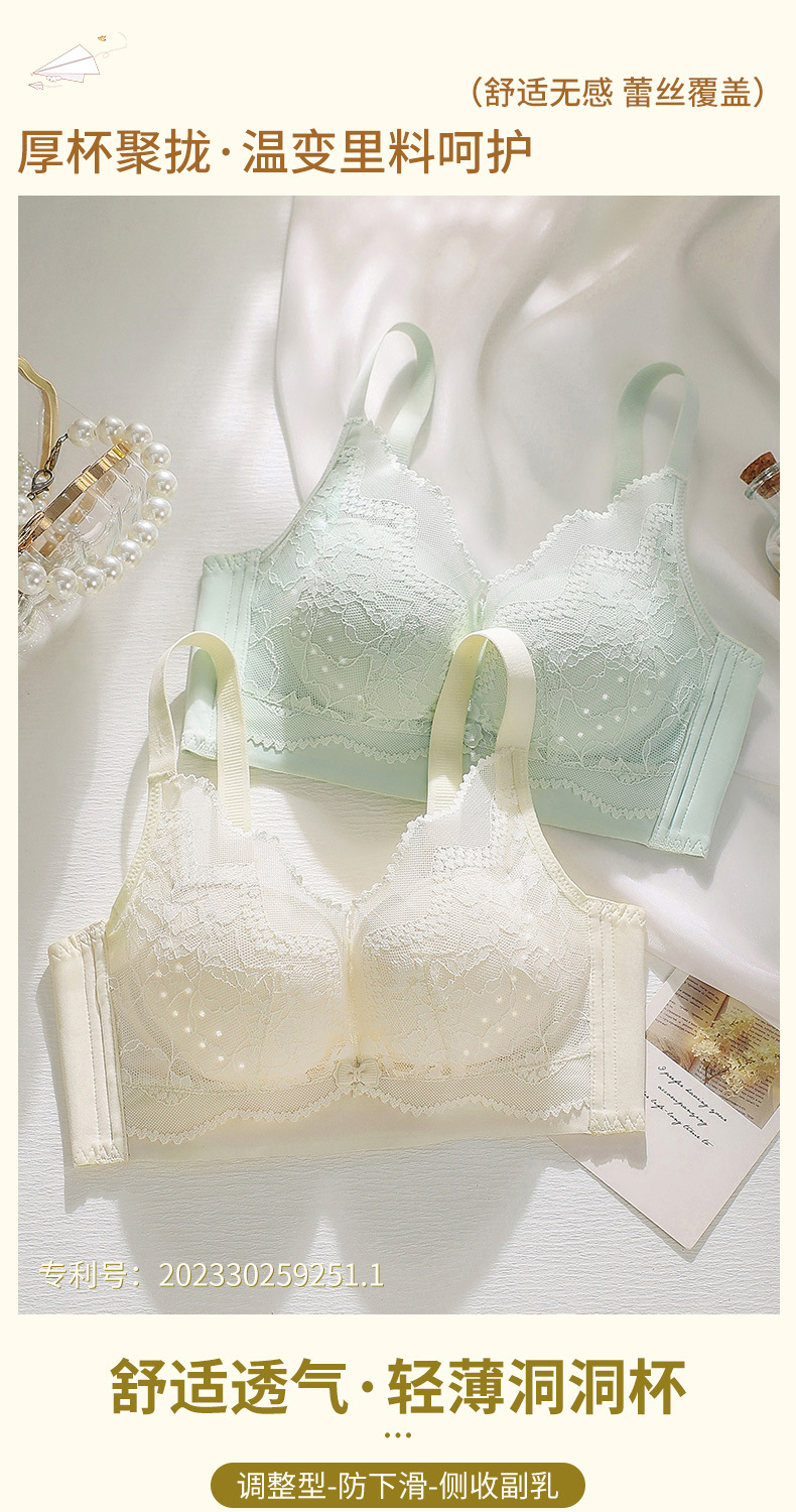여성용 레이스 와이어 프리 홀 컵 속옷, 처짐 방지 조절 가능, 중간 두께 컵, 따뜻한 느낌의 푸쉬업 브라