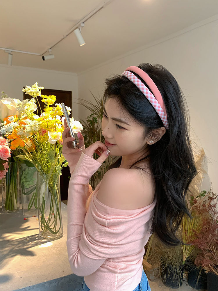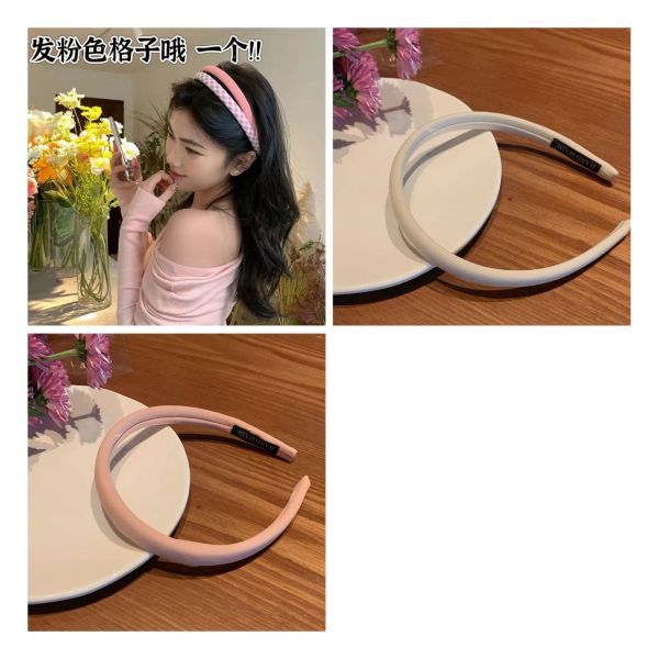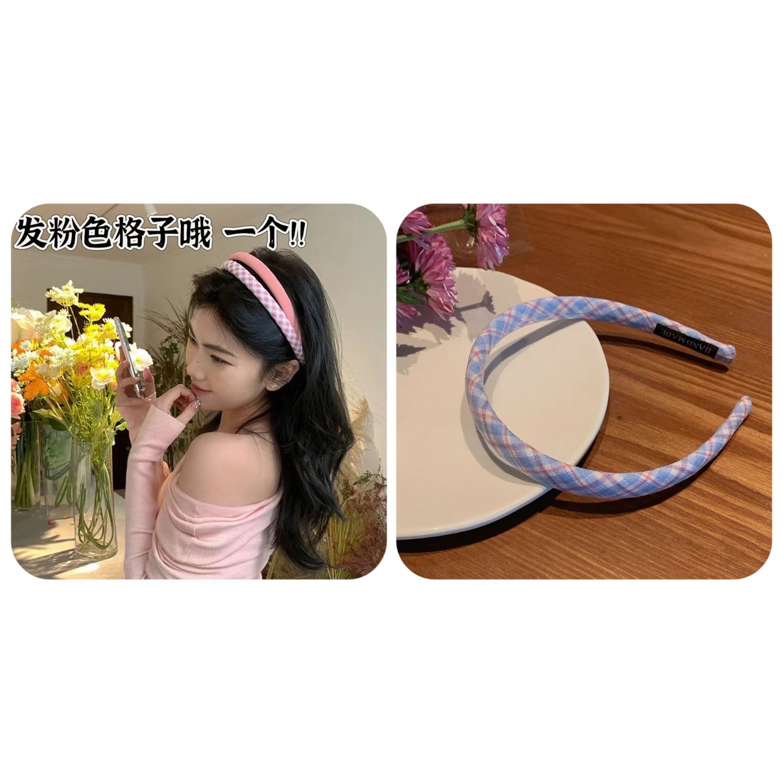 ins 컬러 격자 무늬 헤어밴드 솔리드 컬러 다용도 슈퍼 요정 얇은 헤어밴드 대학 스타일 연령 감소 높은 두개골 달콤한 헤어 액세서리