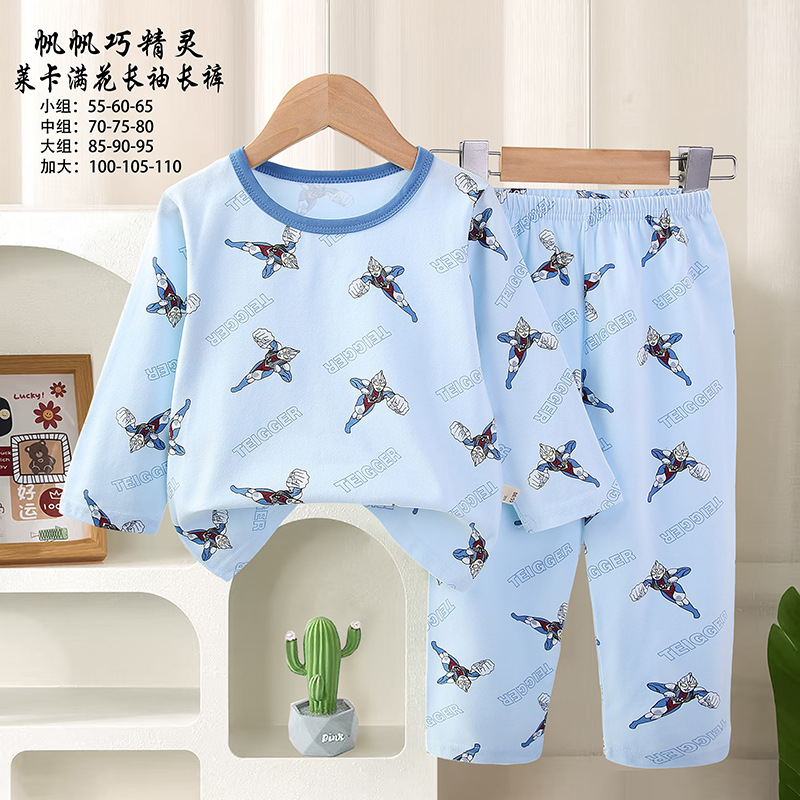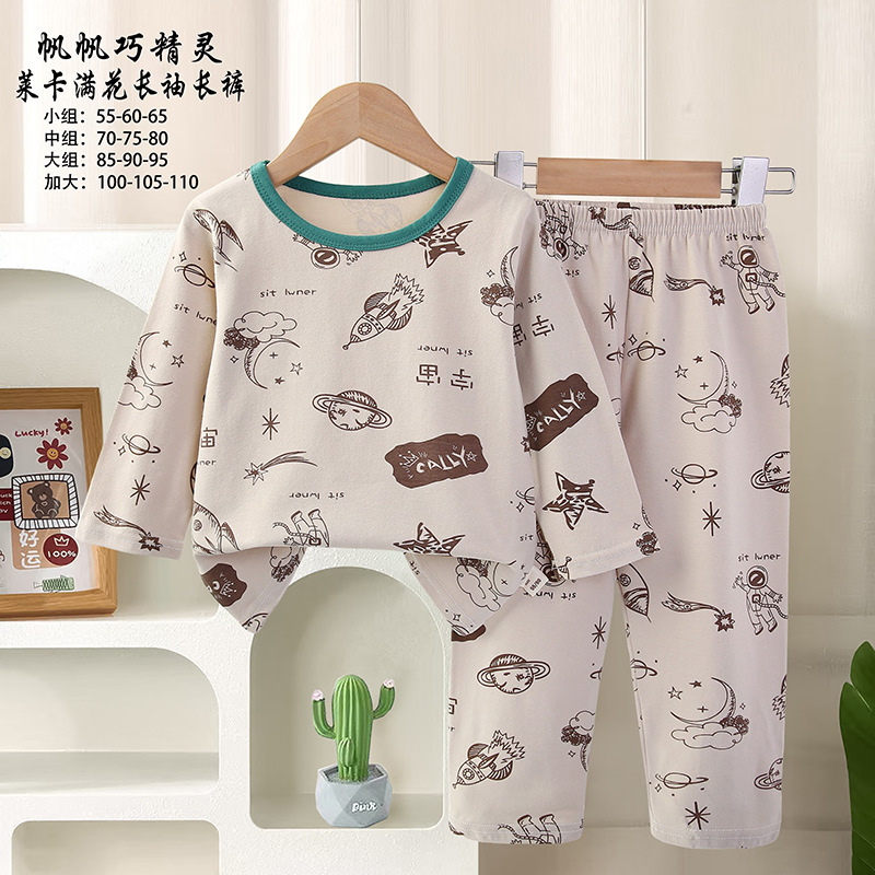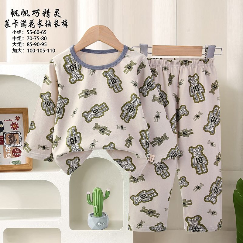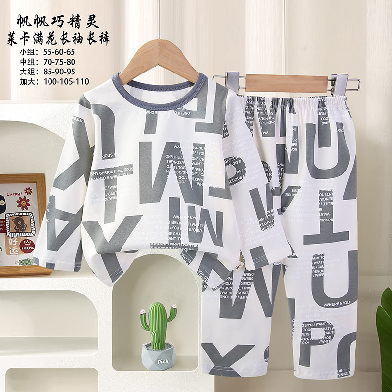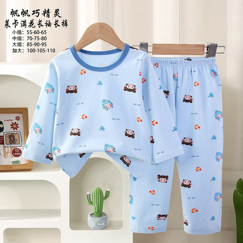 제조업체 맞춤형 소년과 소녀 긴팔 에어컨 의류, 가정복, 아동용 잠옷, 캐주얼 만화 프린트 잠옷 세트스토어 가기