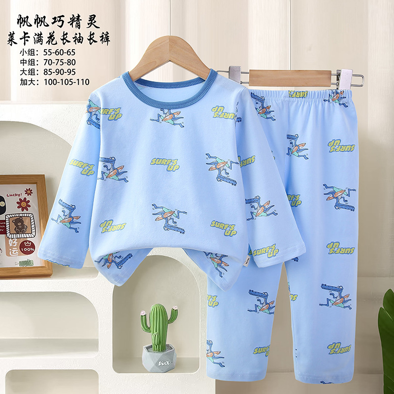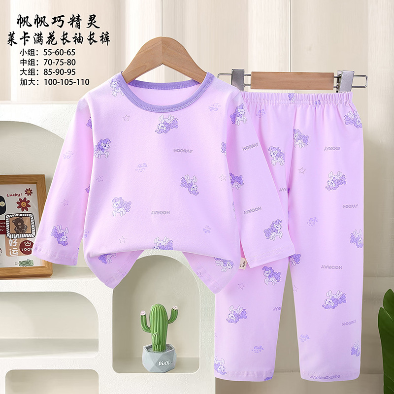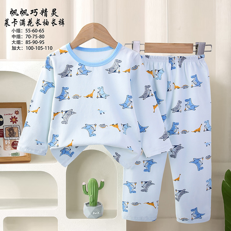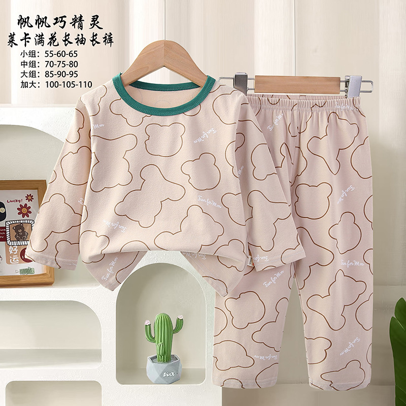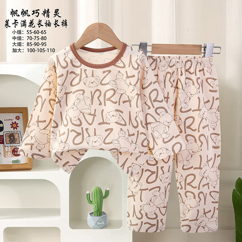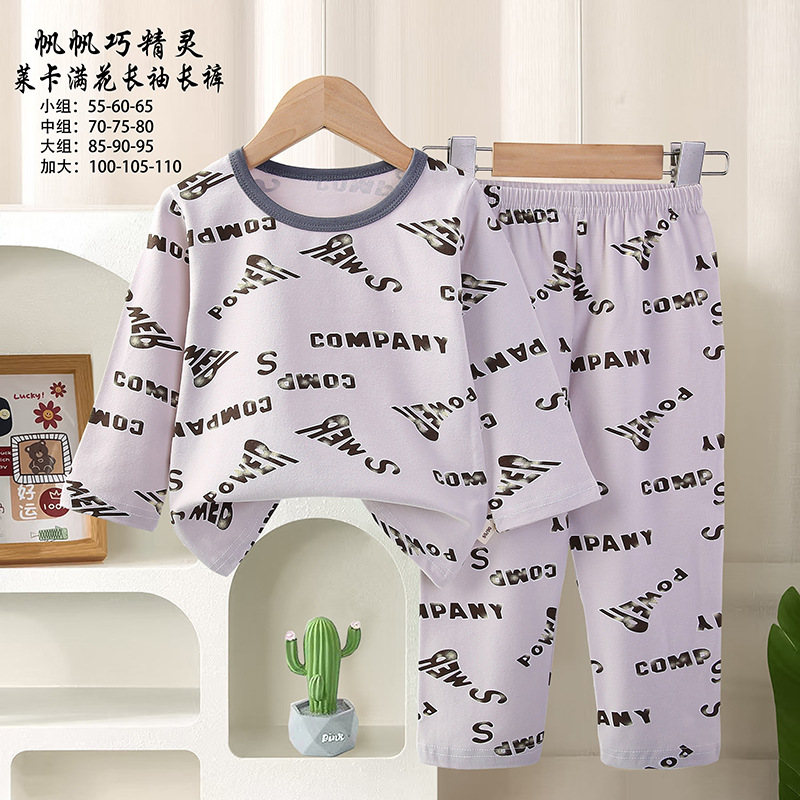 제조업체 맞춤형 소년과 소녀 긴팔 에어컨 의류, 가정복, 아동용 잠옷, 캐주얼 만화 프린트 잠옷 세트스토어 가기
