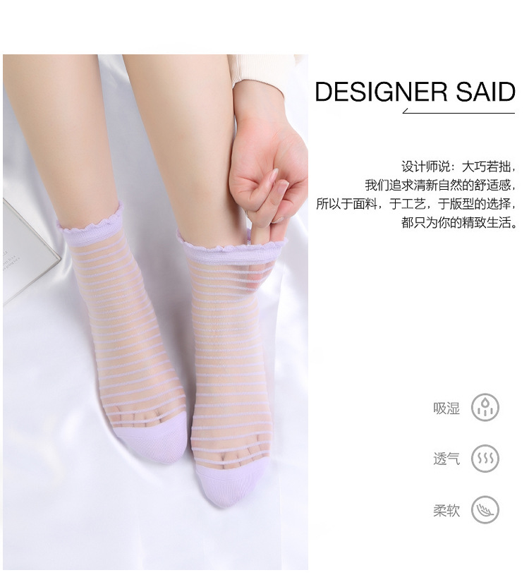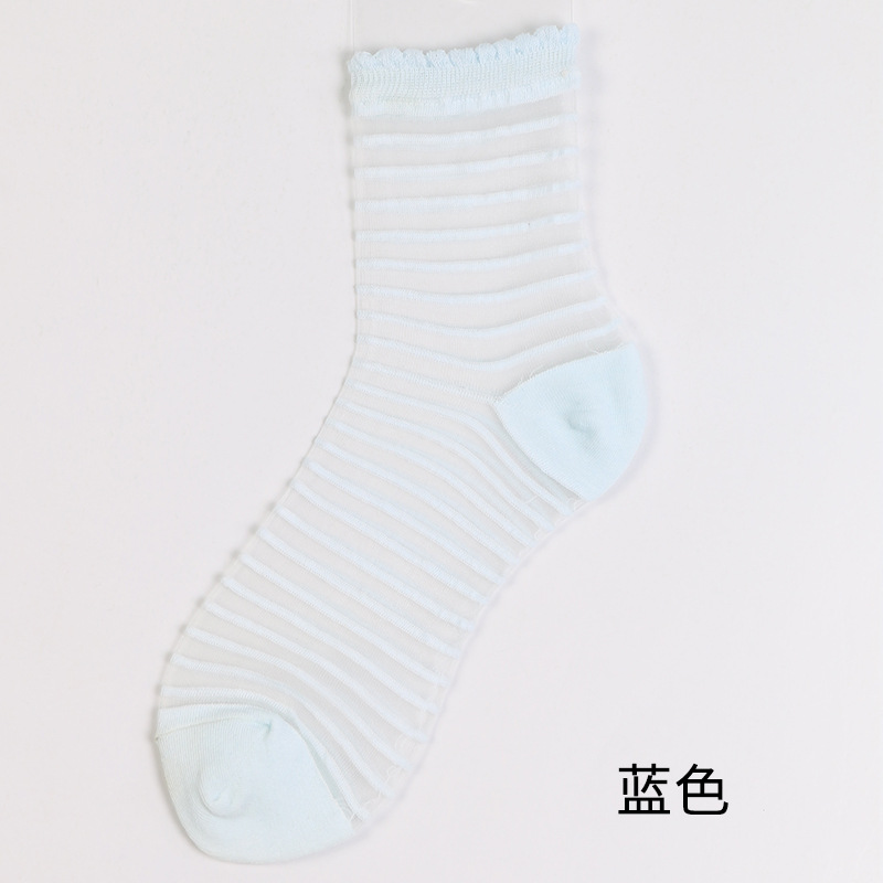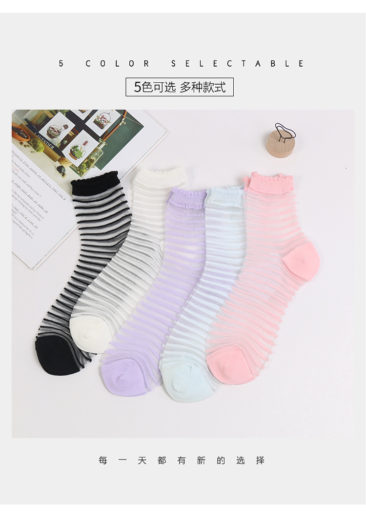 양말 여성 봄 여름 새로운 얇은 패션 얇은 크리스탈 실크 중간 튜브 여성 양말 멋진 투명 줄무늬 유리 실크 양말스토어 가기