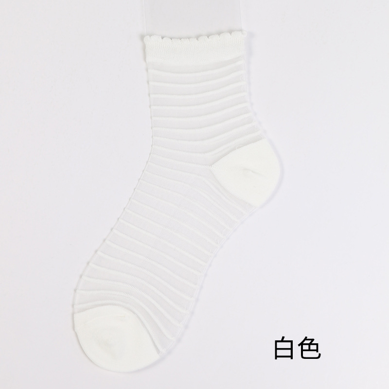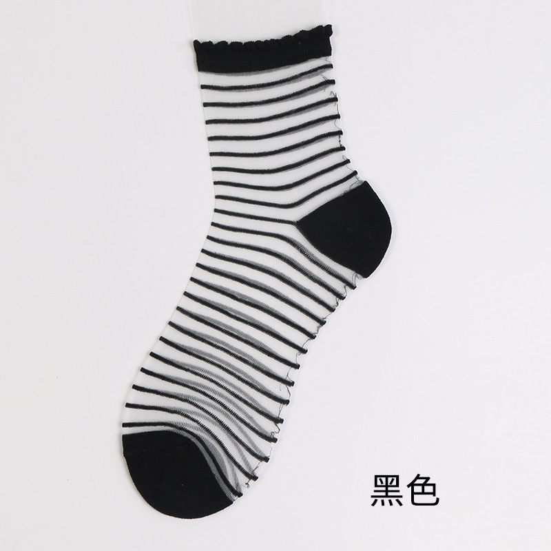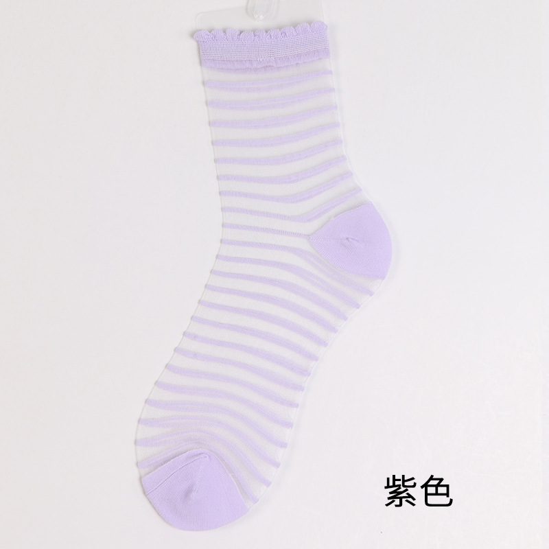양말 여성 봄 여름 새로운 얇은 패션 얇은 크리스탈 실크 중간 튜브 여성 양말 멋진 투명 줄무늬 유리 실크 양말