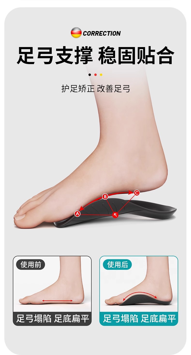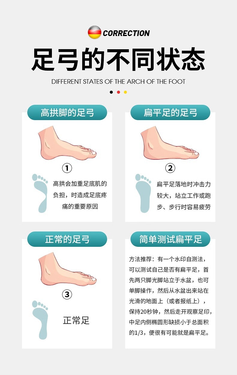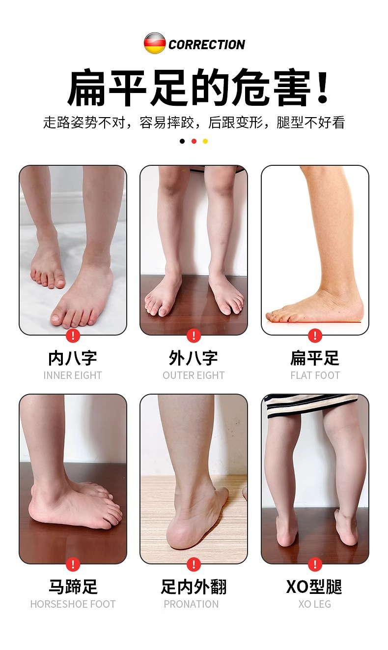 아치 지지 깔창, 평발 교정, XO형 다리, 발바닥 교정, 발 내반 및 외반 붕괴 훈련, 직선 다리