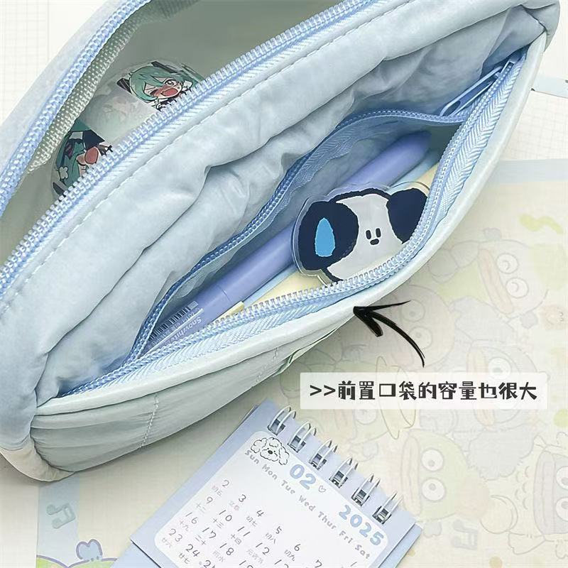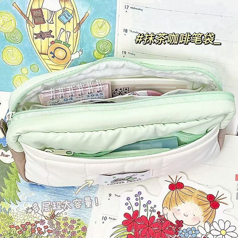 Xiaohongshu 인기 소프트 푸푸 푸딩 컬러 매칭 연필 가방 스타일 심플하고 고급스러운 대용량 학생 문구 가방