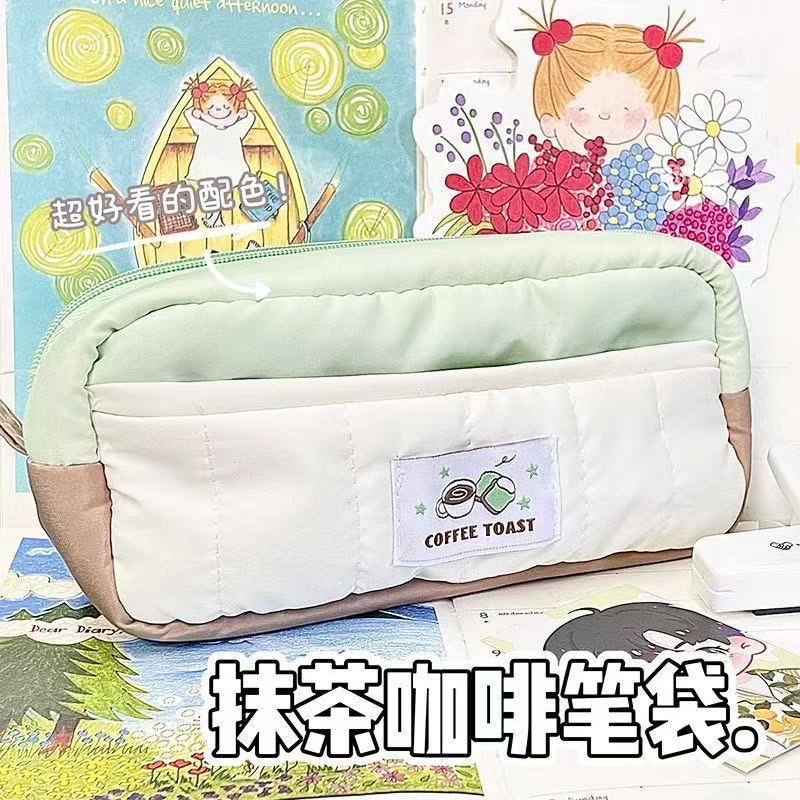 Xiaohongshu 인기 소프트 푸푸 푸딩 컬러 매칭 연필 가방 스타일 심플하고 고급스러운 대용량 학생 문구 가방스토어 가기