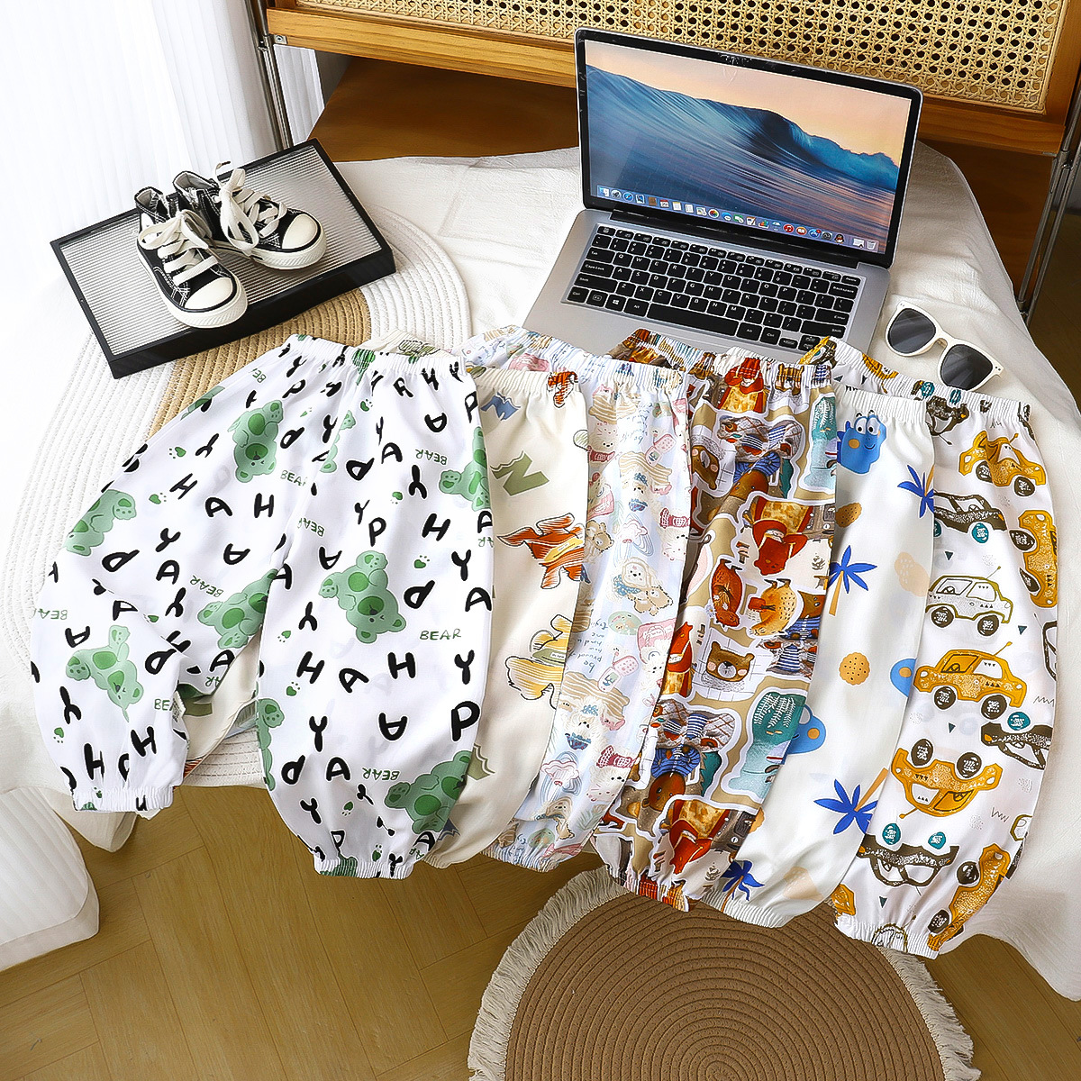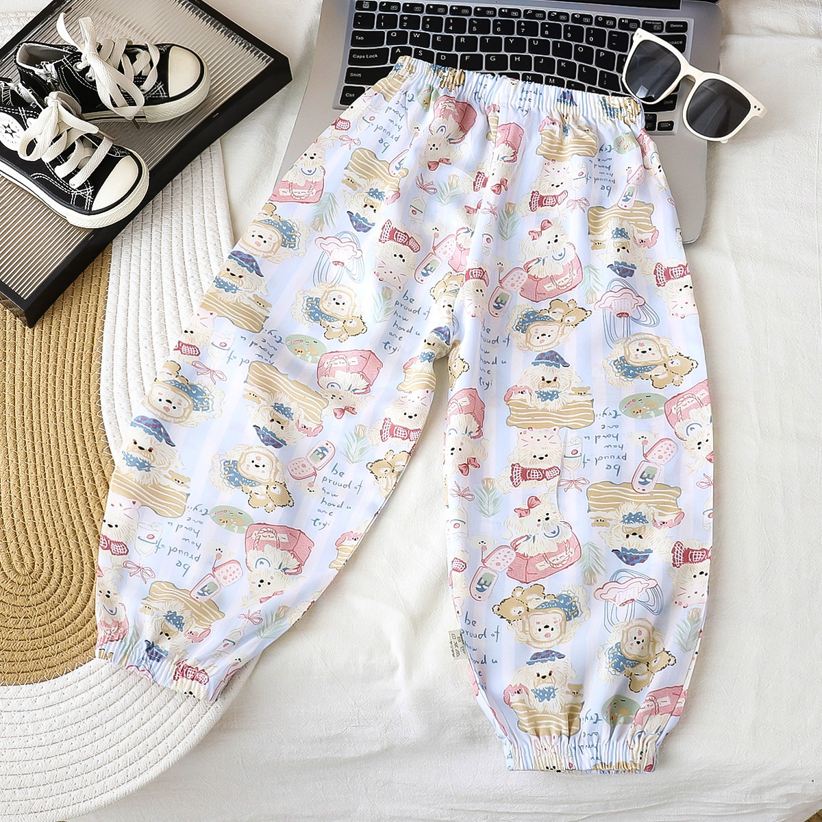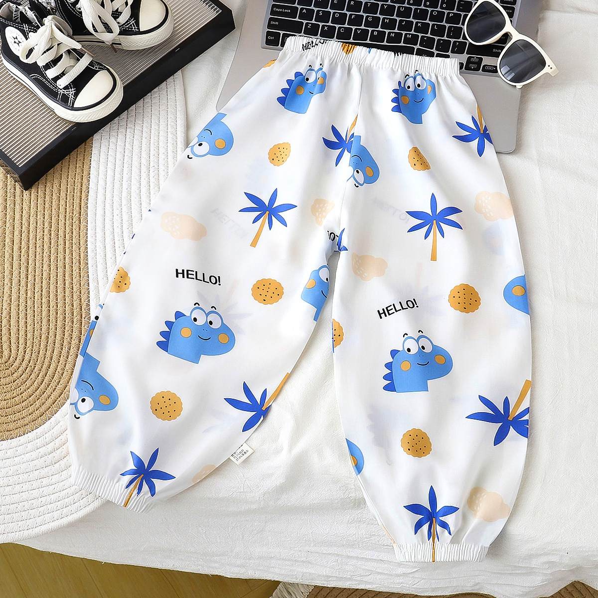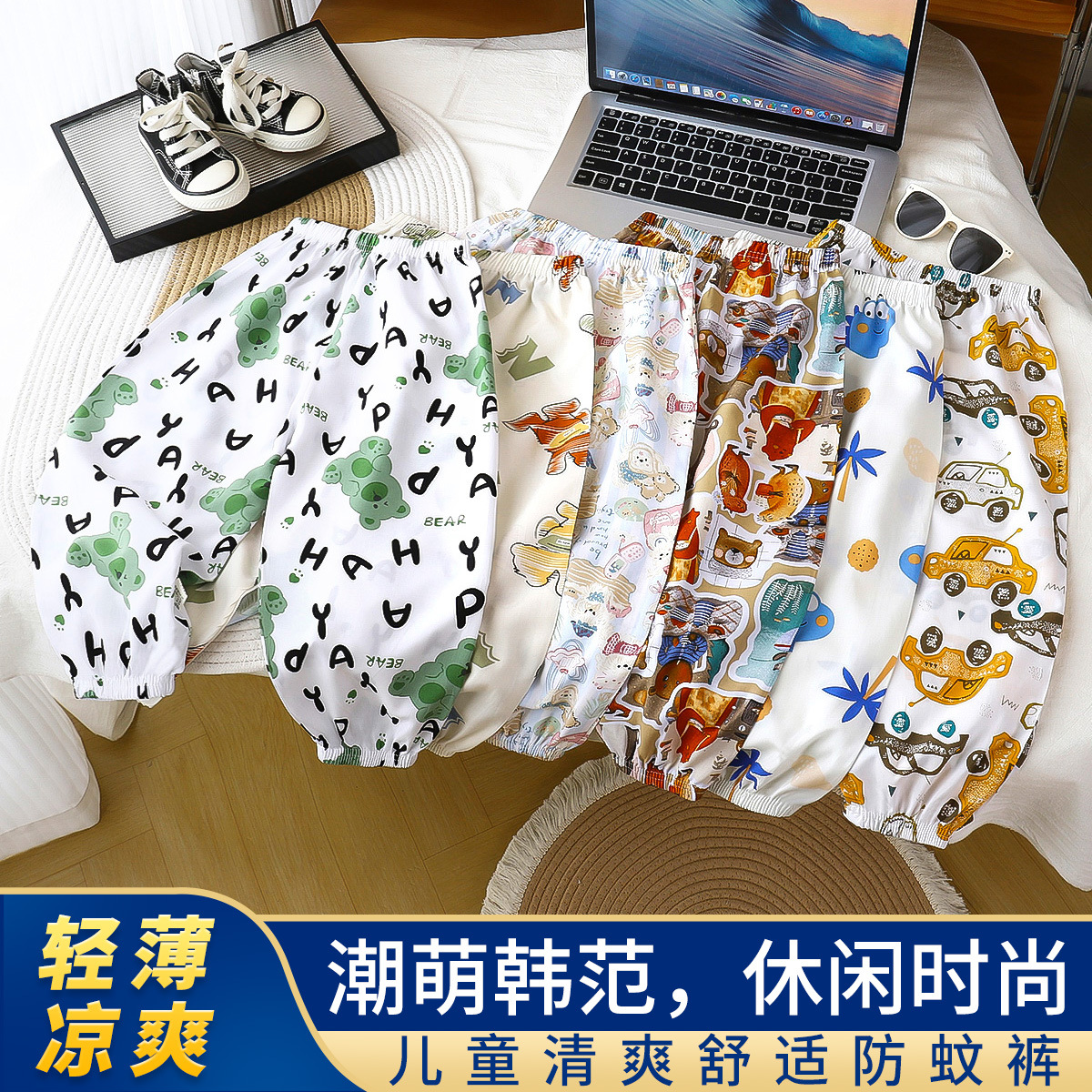 [업그레이드된 리오셀 실크] 새로운 아동 모기 방지 바지 여름 얇은 캐주얼 바지 소년 소녀 블루머스토어 가기