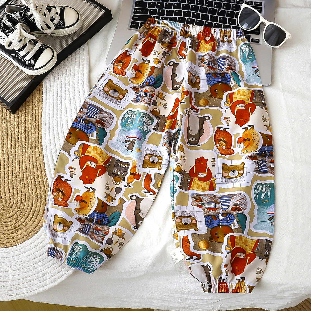 [업그레이드된 리오셀 실크] 새로운 아동 모기 방지 바지 여름 얇은 캐주얼 바지 소년 소녀 블루머