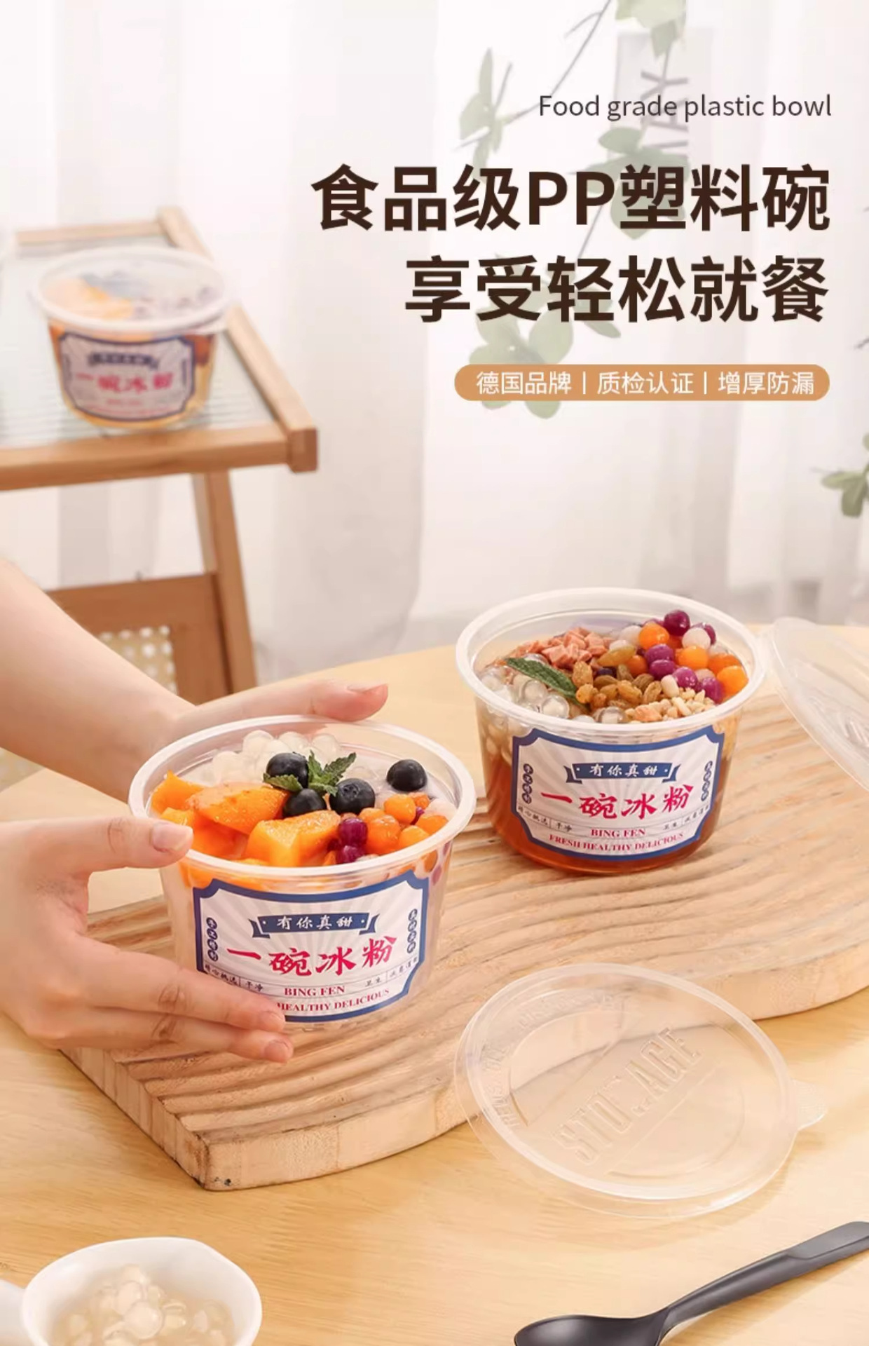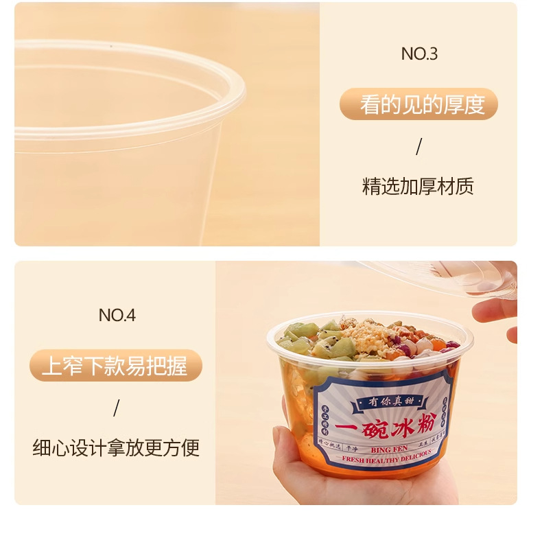 상업용 실속 일회용 얼음 분말 특수 포장 그릇 그물 빨간 플라스틱 디저트 그릇 전체 포장 상자 콩 젤리 컵 세트