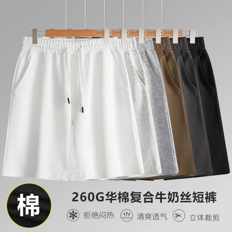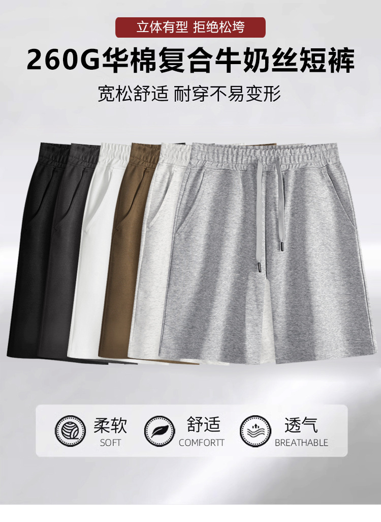 260G 중국면 복합 우유 실크 스트레이트 다리 바지 남자 커플 캐주얼 느슨한 단색 여름 미국 반바지