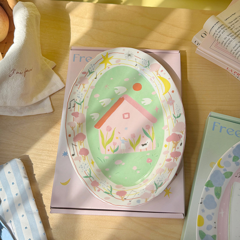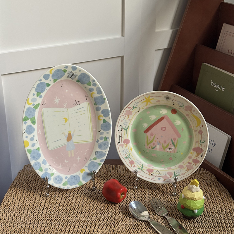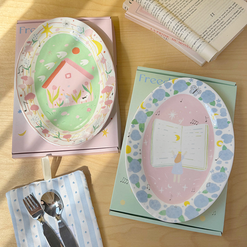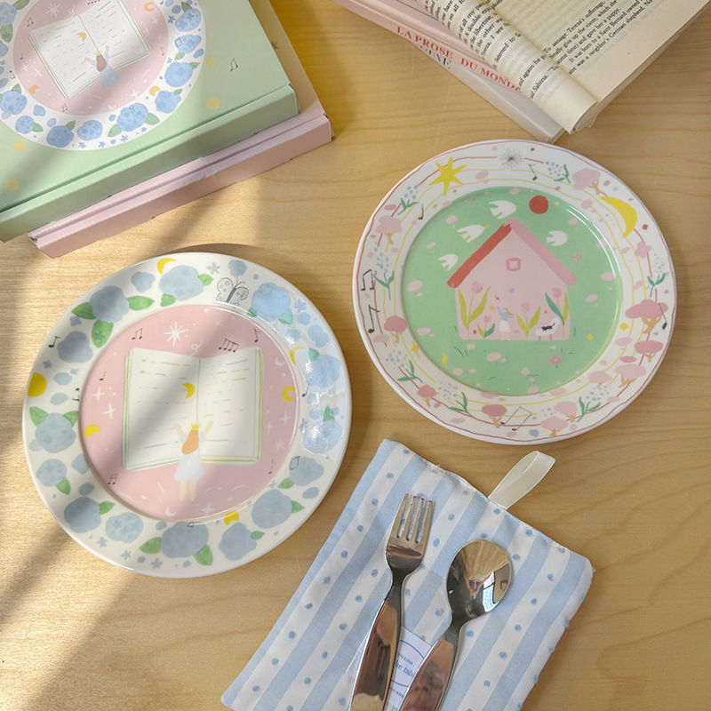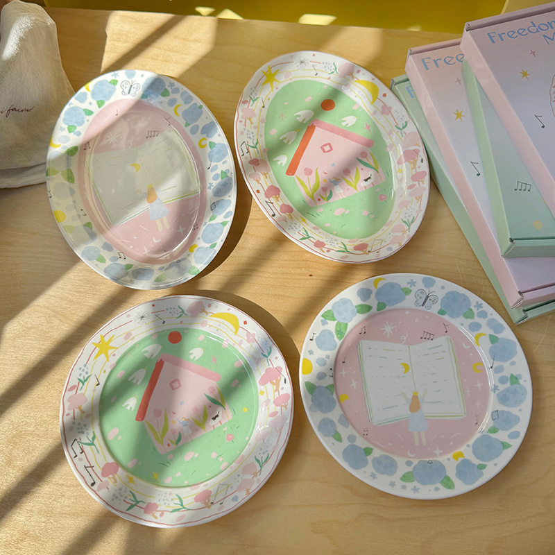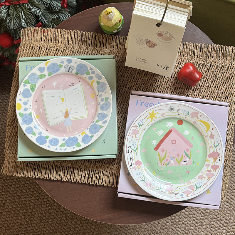 저작권 만화 재미 손으로 그린 그림 스타일 세라믹 플레이트 선물 소녀 심장 아침 식사 접시 디저트 플레이트 10 인치스토어 가기