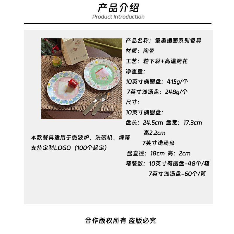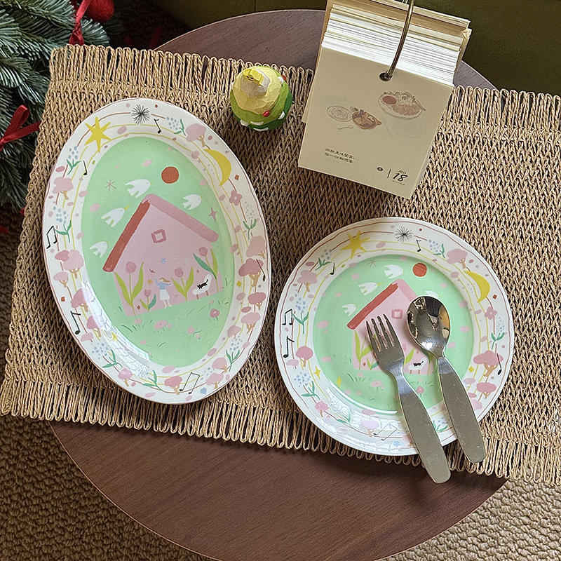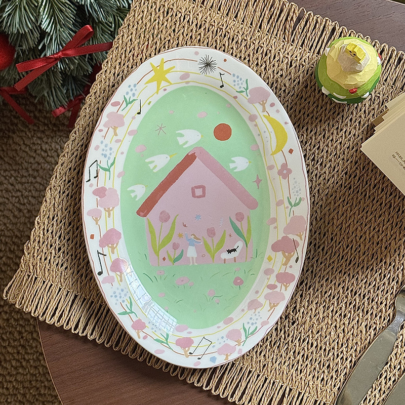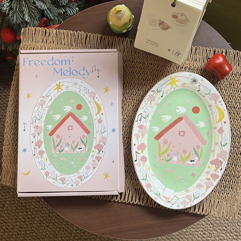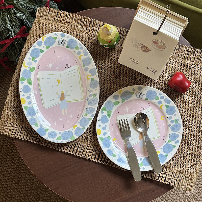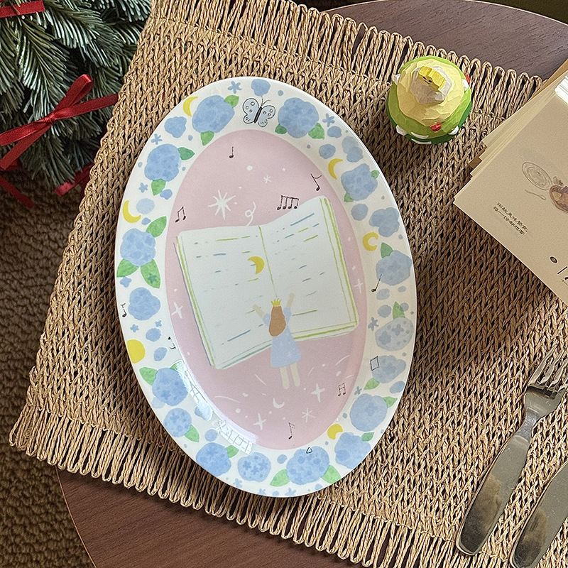 저작권 만화 재미 손으로 그린 그림 스타일 세라믹 플레이트 선물 소녀 심장 아침 식사 접시 디저트 플레이트 10 인치스토어 가기