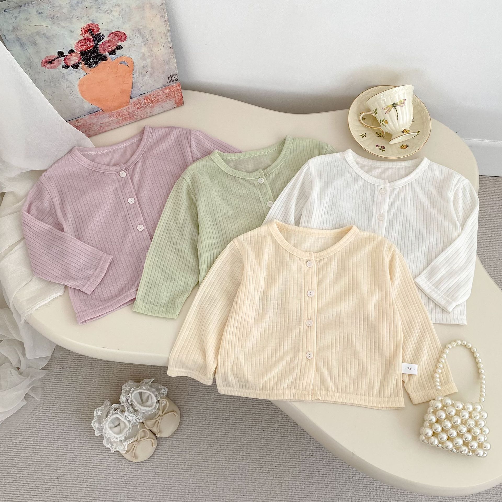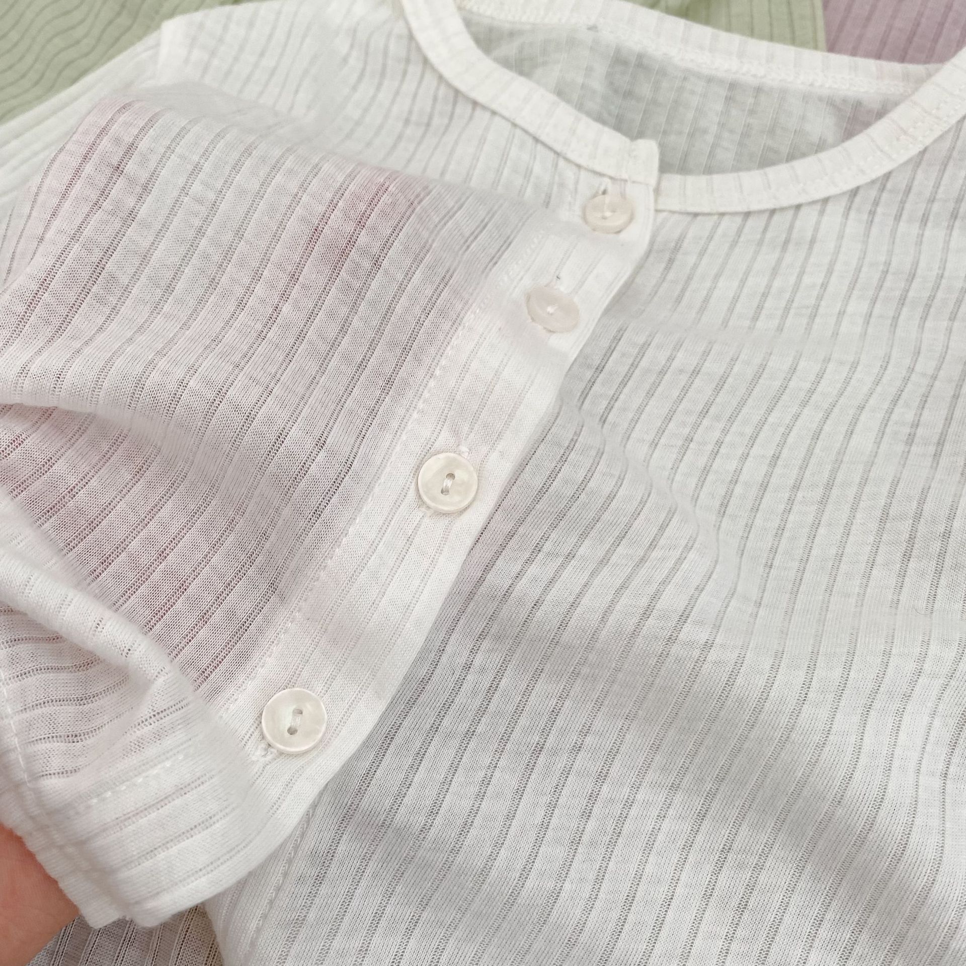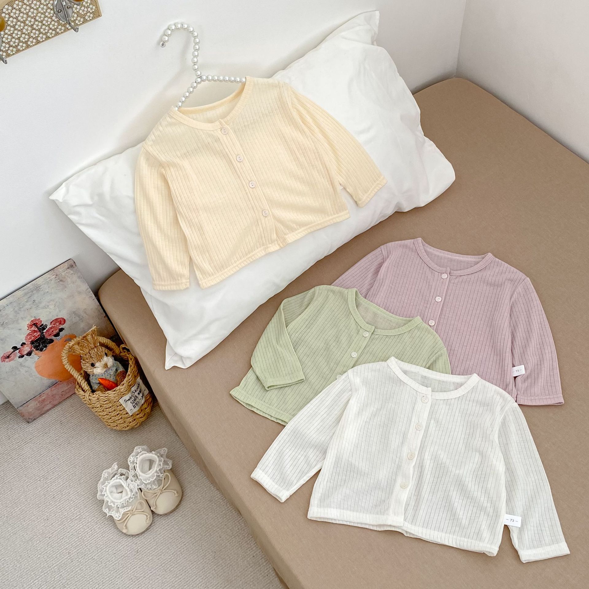 여름 서양식 아기 소녀의 선스크린 셔츠 단색 간단한 둥근 목 에어컨 카디건 경량 및 통기성 소녀의 선 스크린 재킷