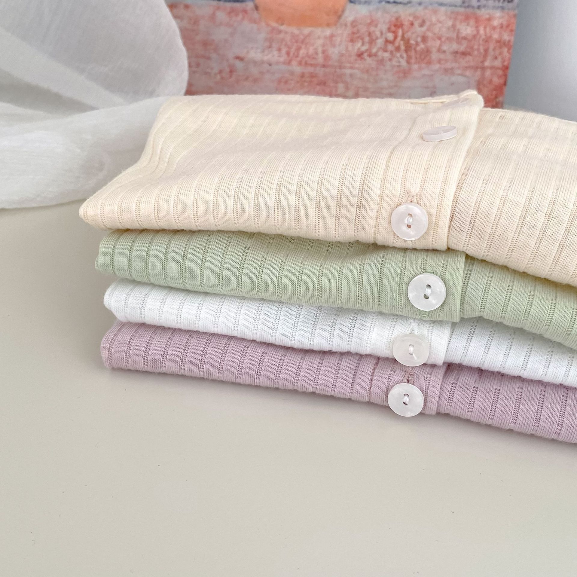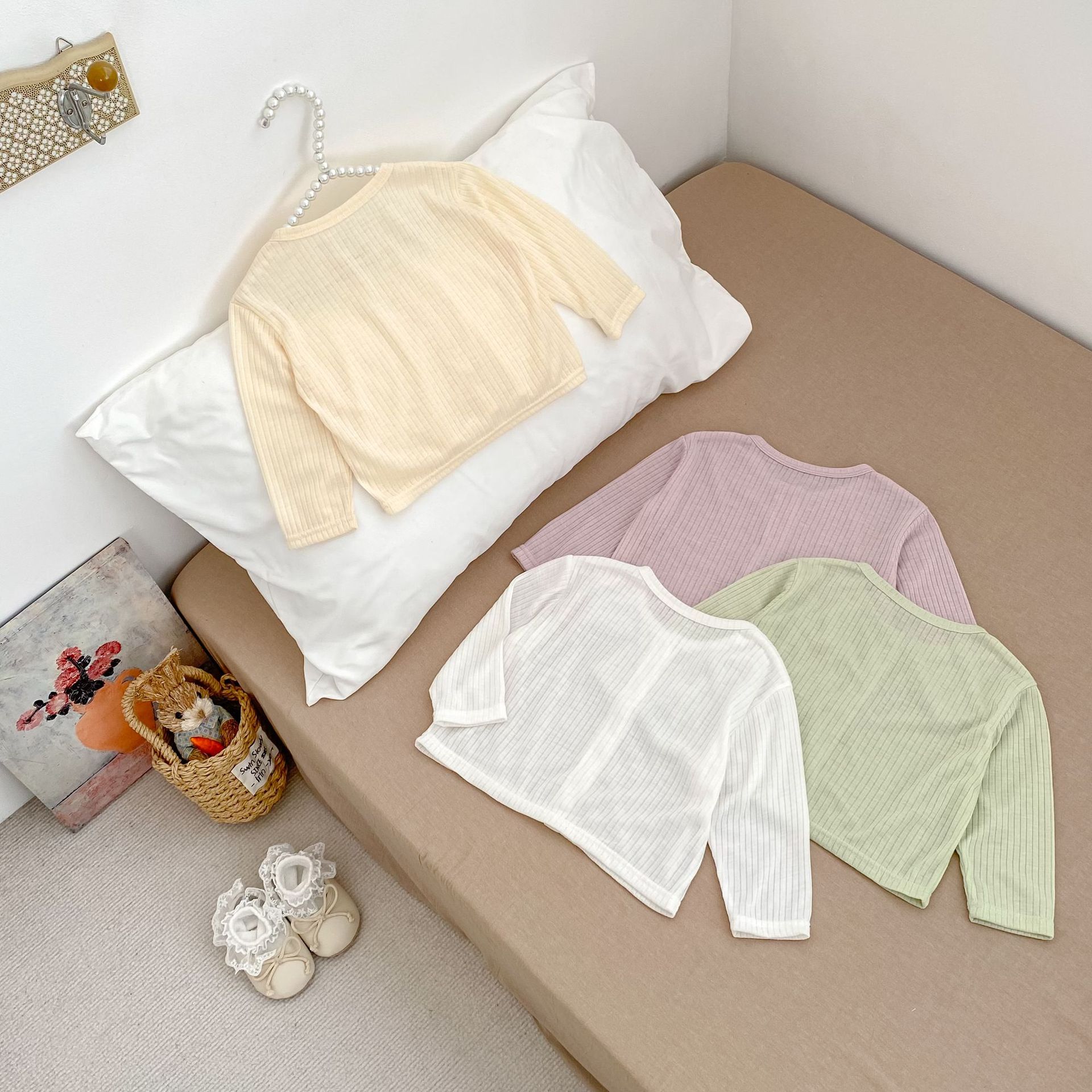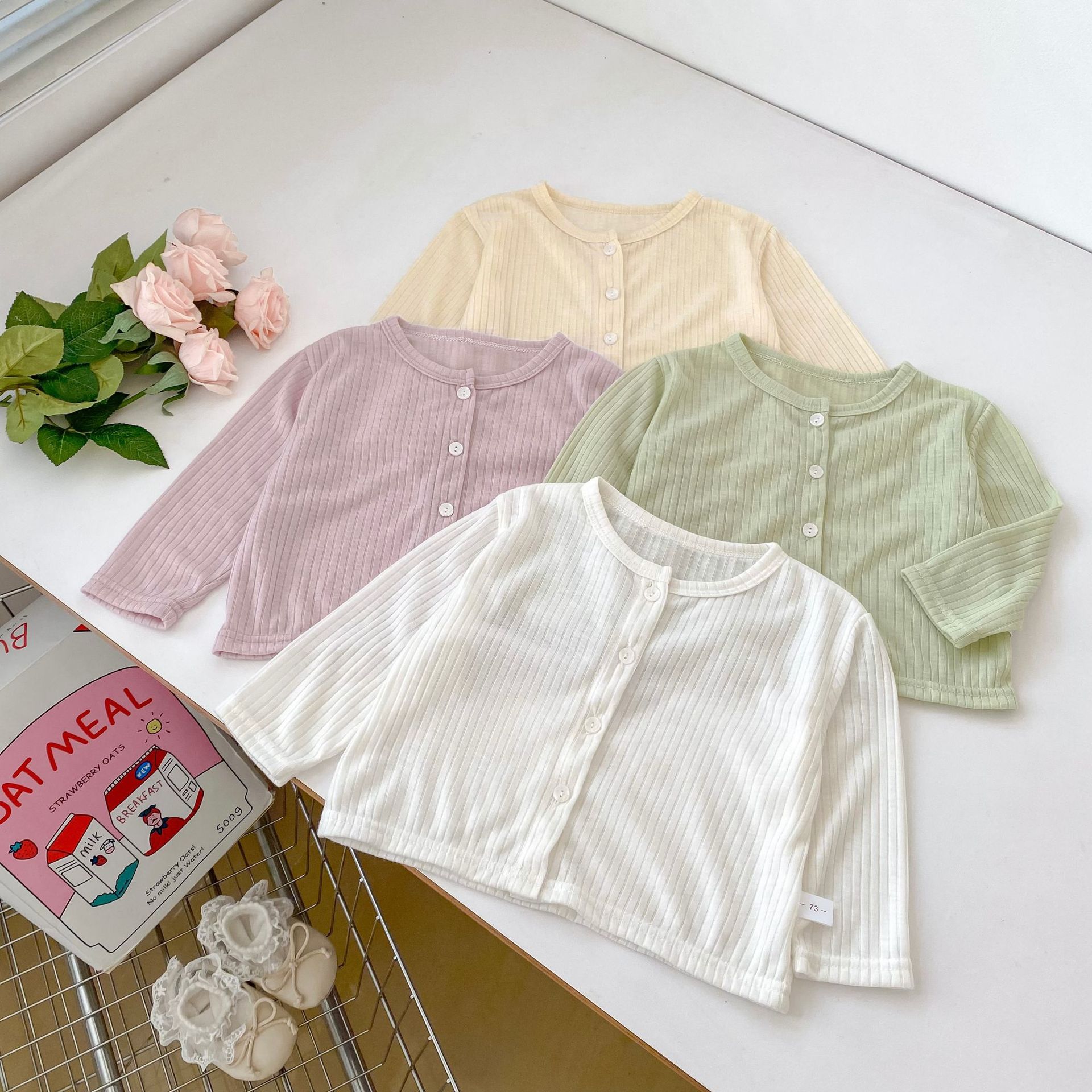 여름 서양식 아기 소녀의 선스크린 셔츠 단색 간단한 둥근 목 에어컨 카디건 경량 및 통기성 소녀의 선 스크린 재킷