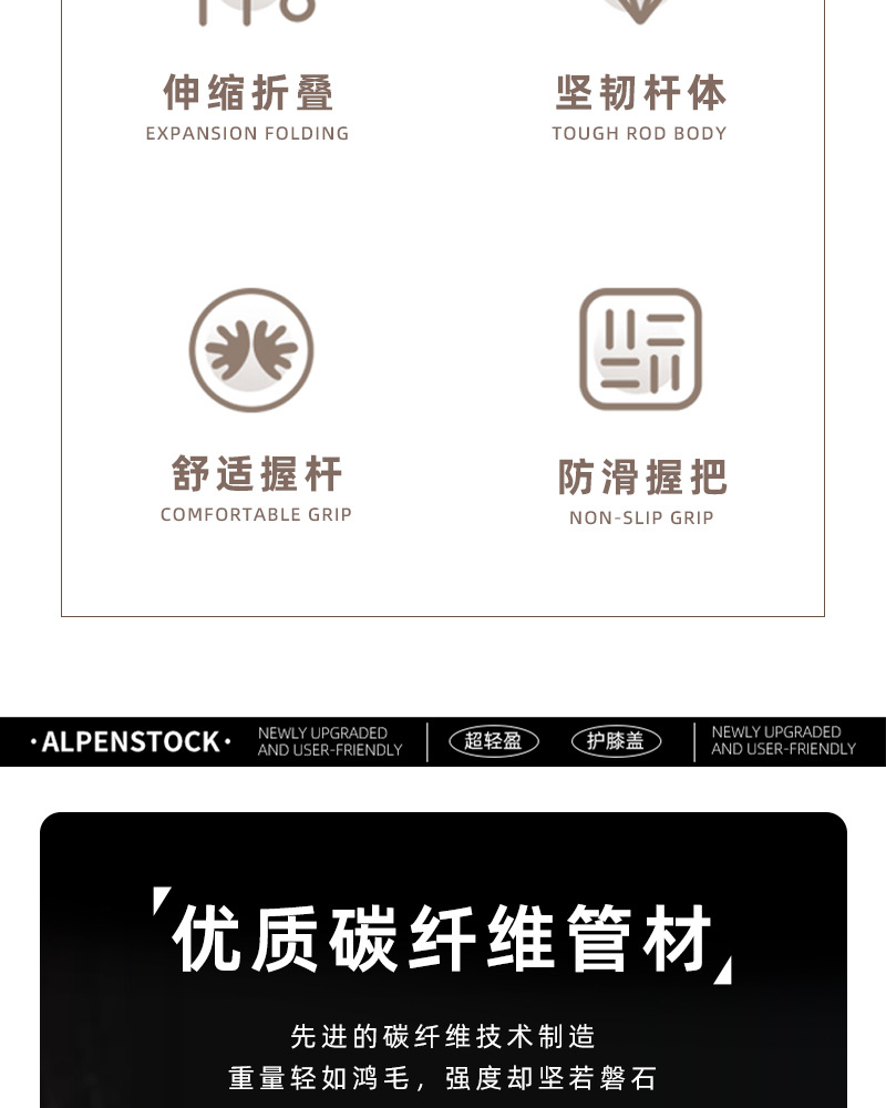 소피오 트레킹 스틱 야외 경량 3단 텔레스코픽 탄소 섬유 지팡이 외부 잠금 하이킹 및 등산 장비 Yutian스토어 가기