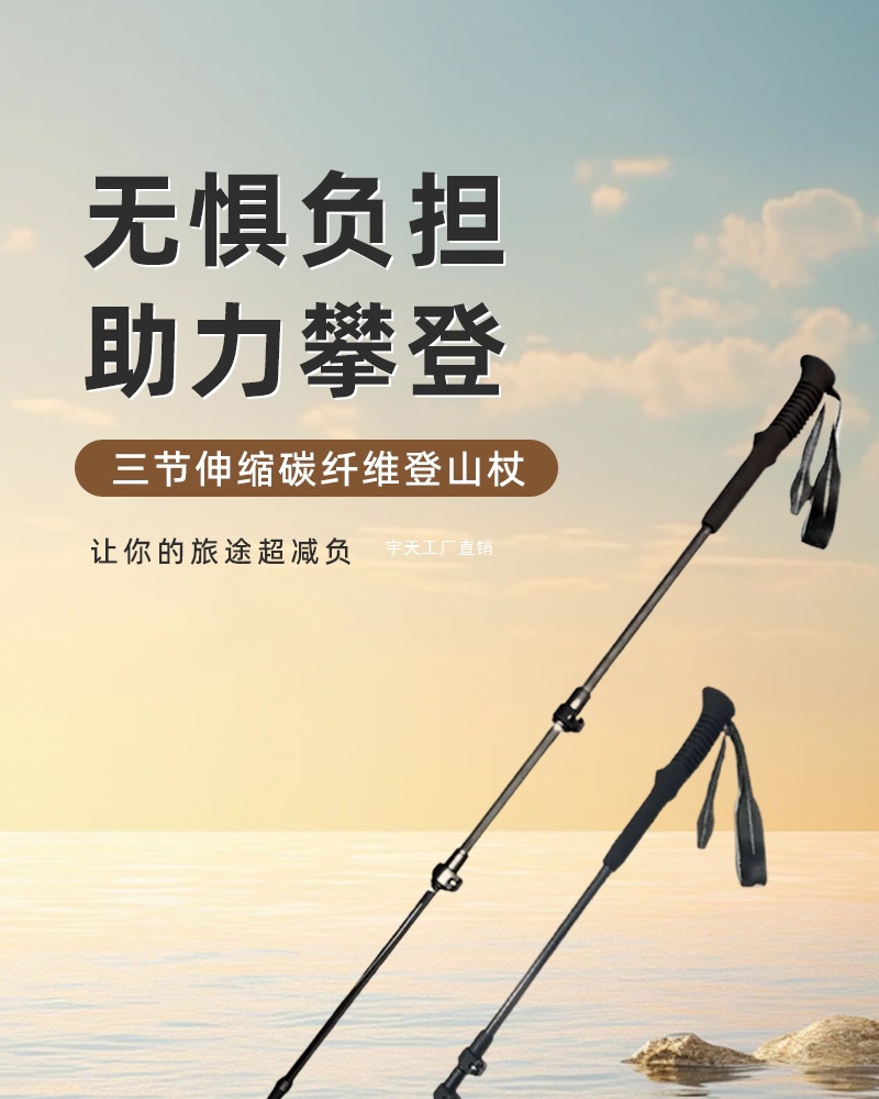 소피오 트레킹 스틱 야외 경량 3단 텔레스코픽 탄소 섬유 지팡이 외부 잠금 하이킹 및 등산 장비 Yutian