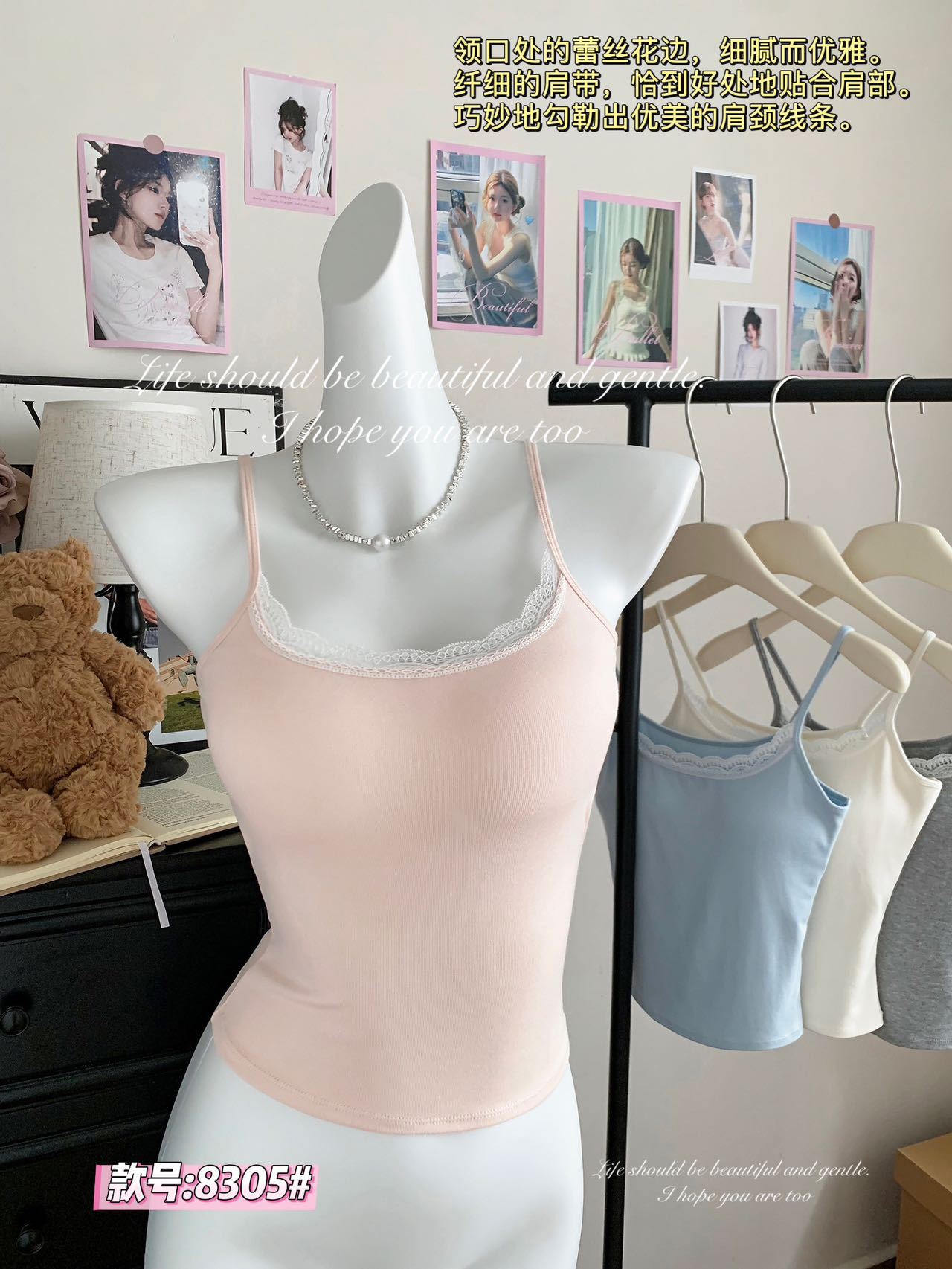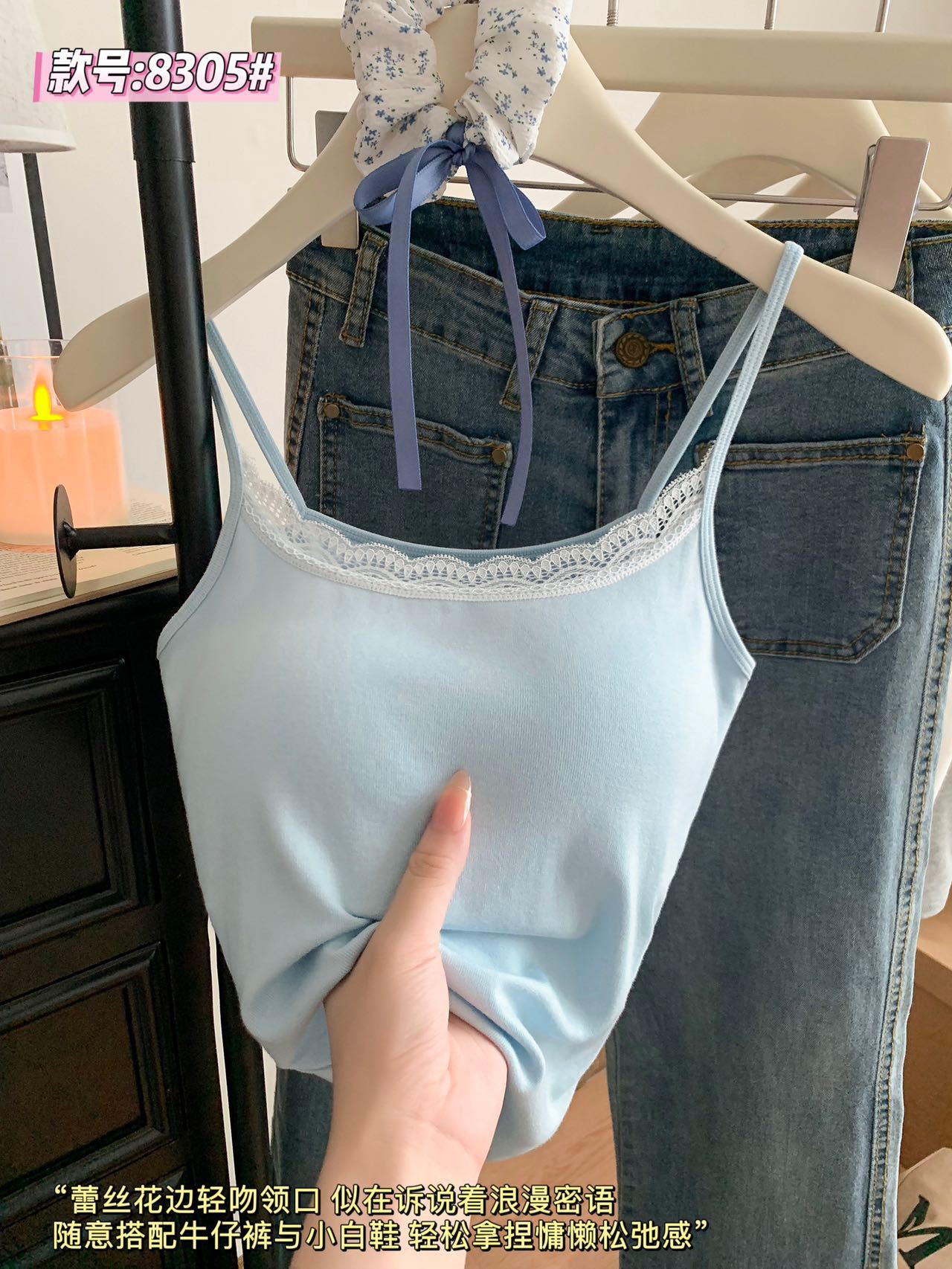 Pure Desire Hot Girl 탑 레이스 스플 라이스 가슴 패드 여성용 캐미솔 여름 크림 소녀 스타일 이너웨어스토어 가기