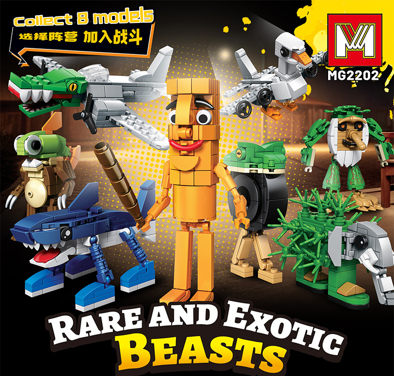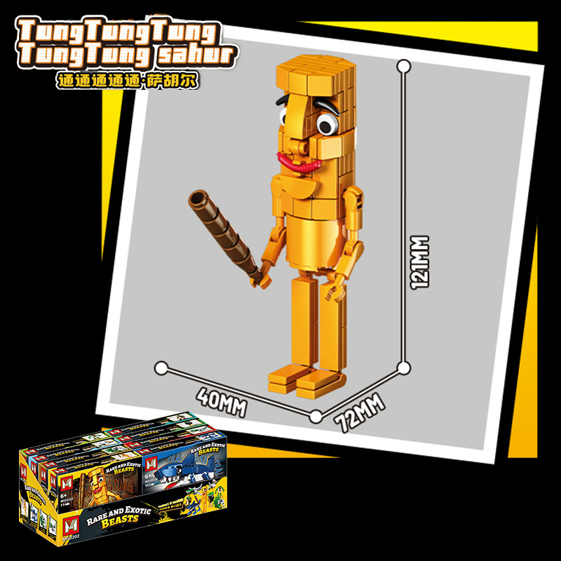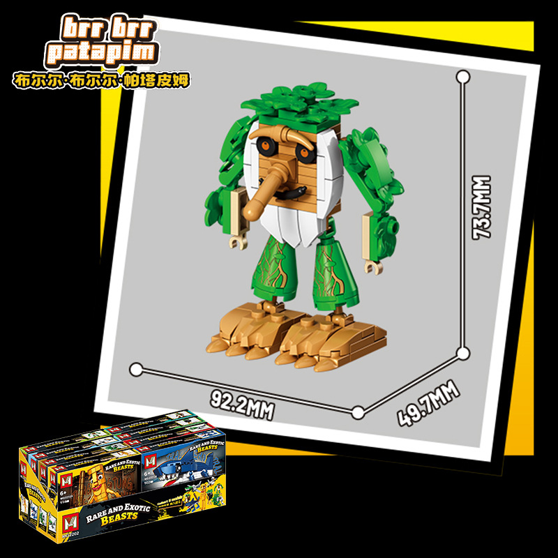 외국 AI 산해고전 나무 막대기 인형 상어 툰퉁툰수르 학생용 빌딩 블록 조립 피규어 장난감스토어 가기