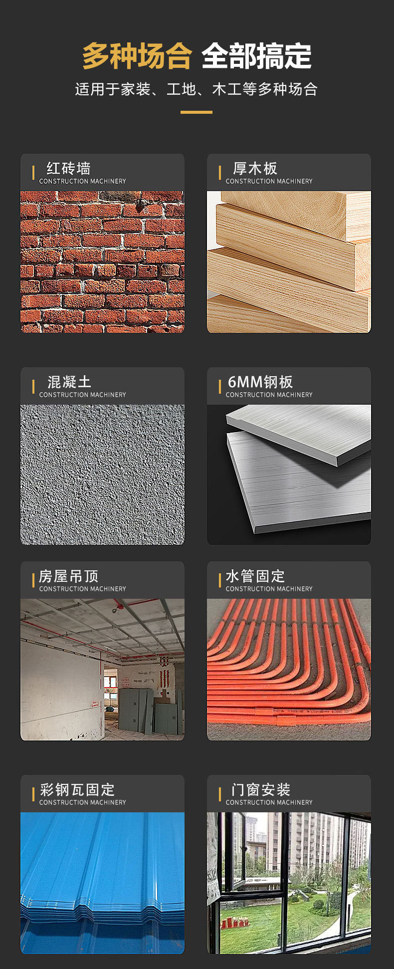 钉子规格:适用于M6U/M8U/M10U型钉子、32/42/47mm炮钉、16/20/25/32mm管卡钉及其他一体式钉子。