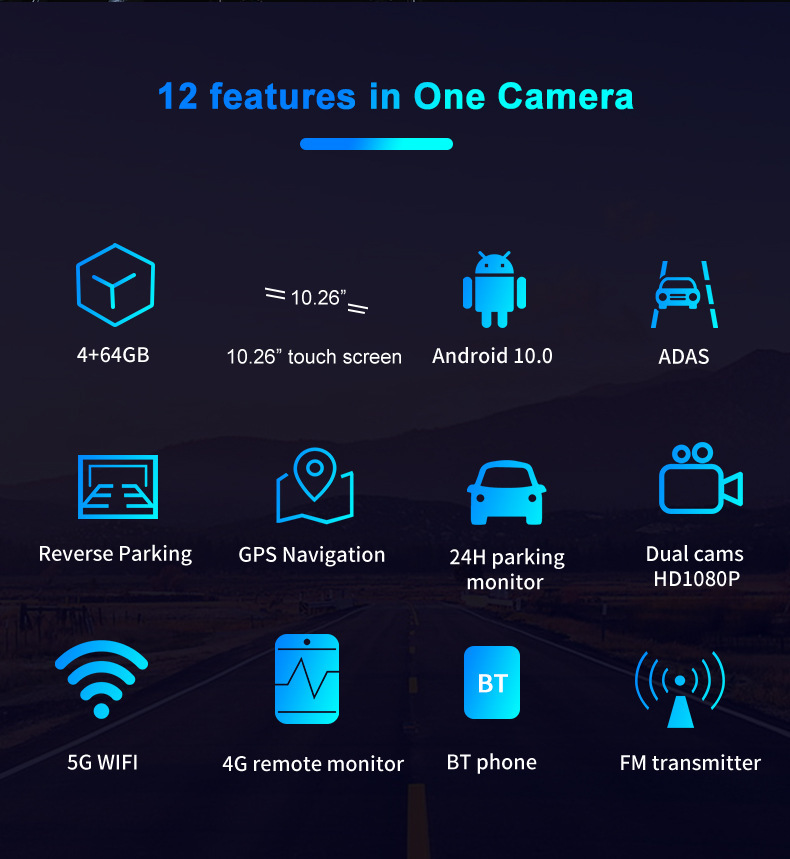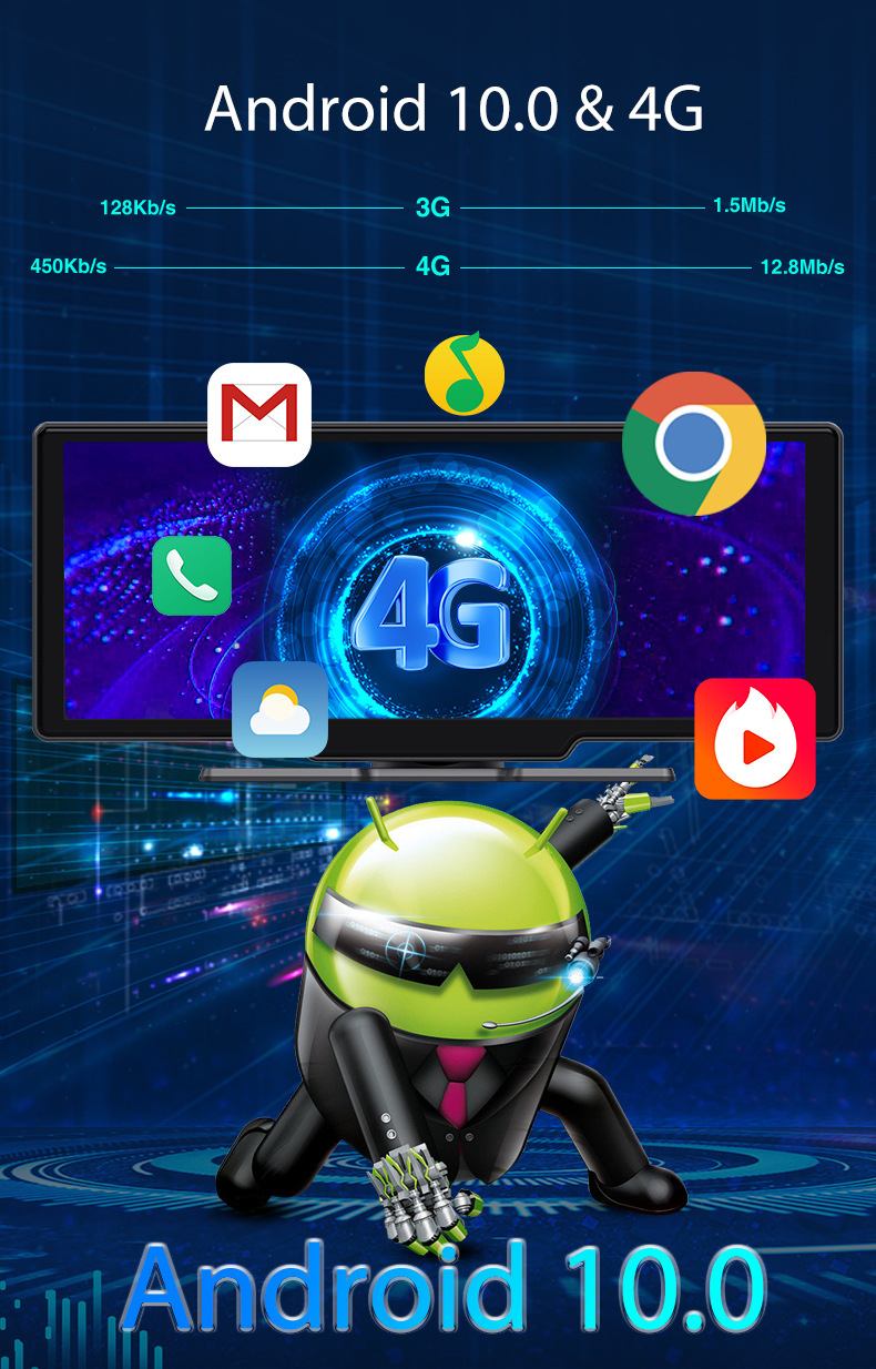 4G 안드로이드 스마트 10.0 시스템 12인치 4+64GB 대용량 메모리 스크린 프로젝션 Carplay 듀얼 녹화 운전 레코더
