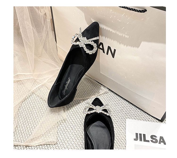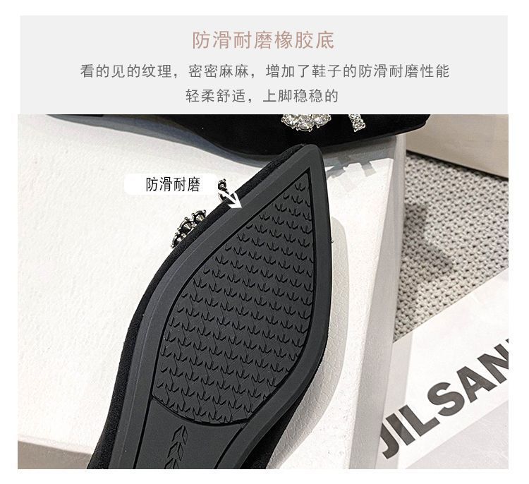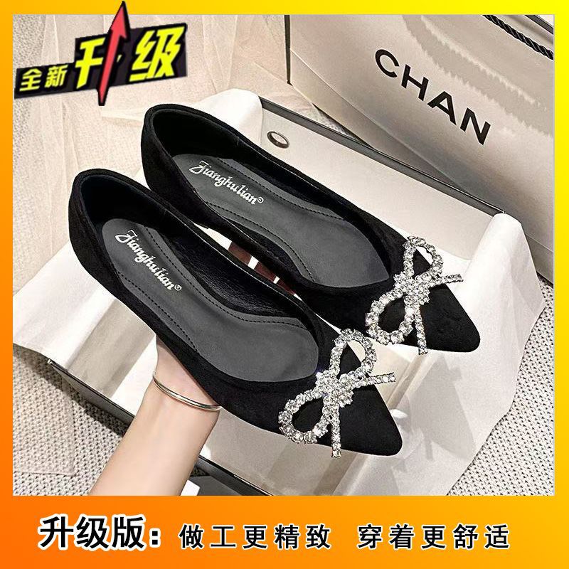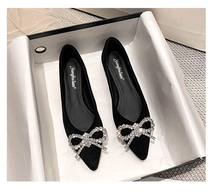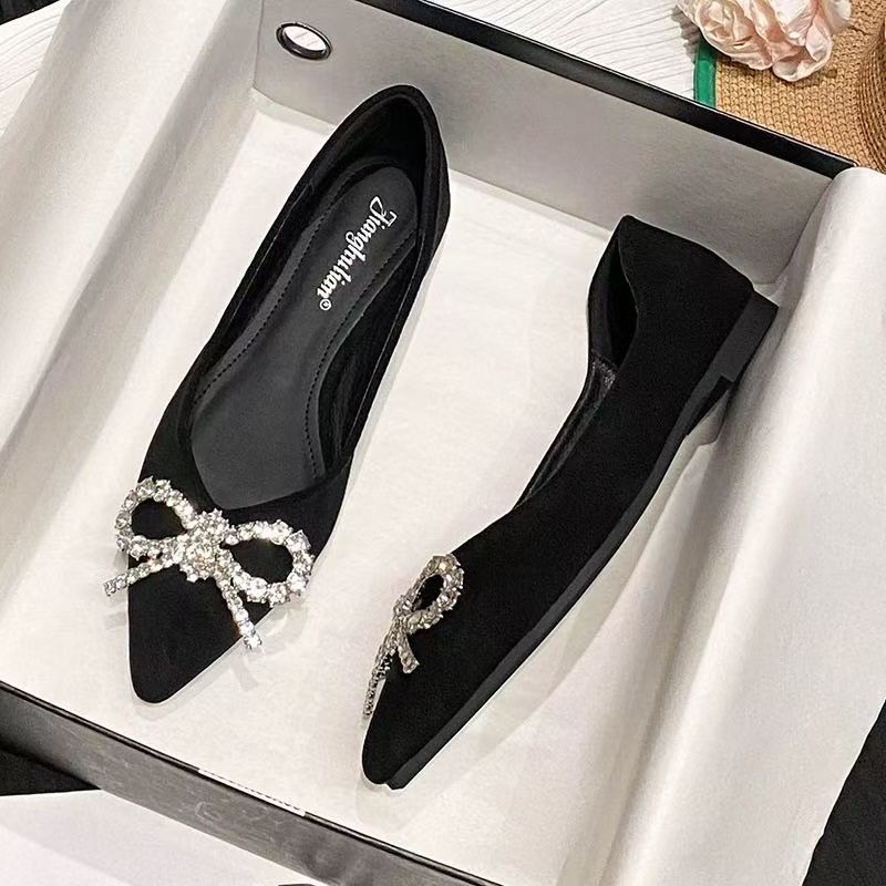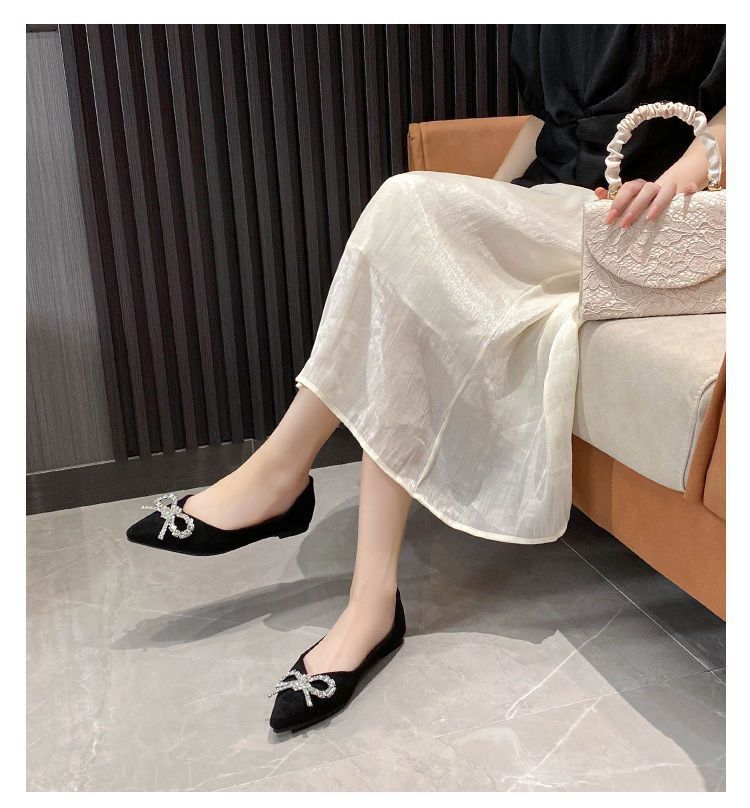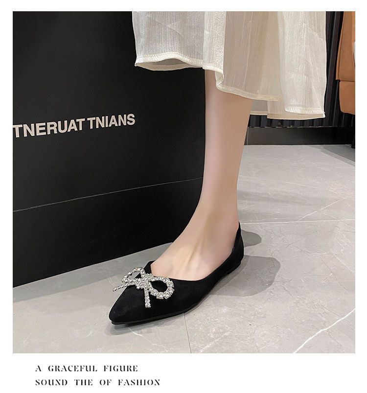 여성을위한 다목적 가벼운 스타일 향기로운 스타일 뾰족한 신발 2025 새로운 가을 프랑스어 Bowknot 라인 석 플랫 신발스토어 가기