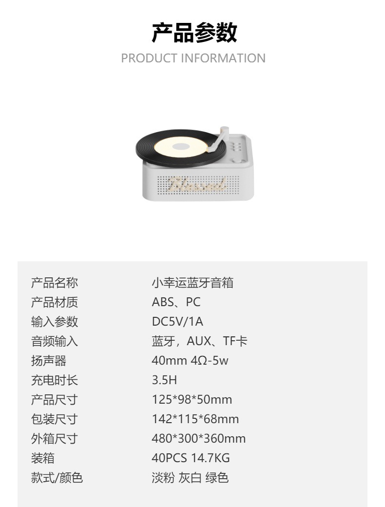 작은 행운의 무선 블루투스 스피커, 레트로 스타일의 야간 조명과 사운드 통합, 귀여운 소형 스피커 선물