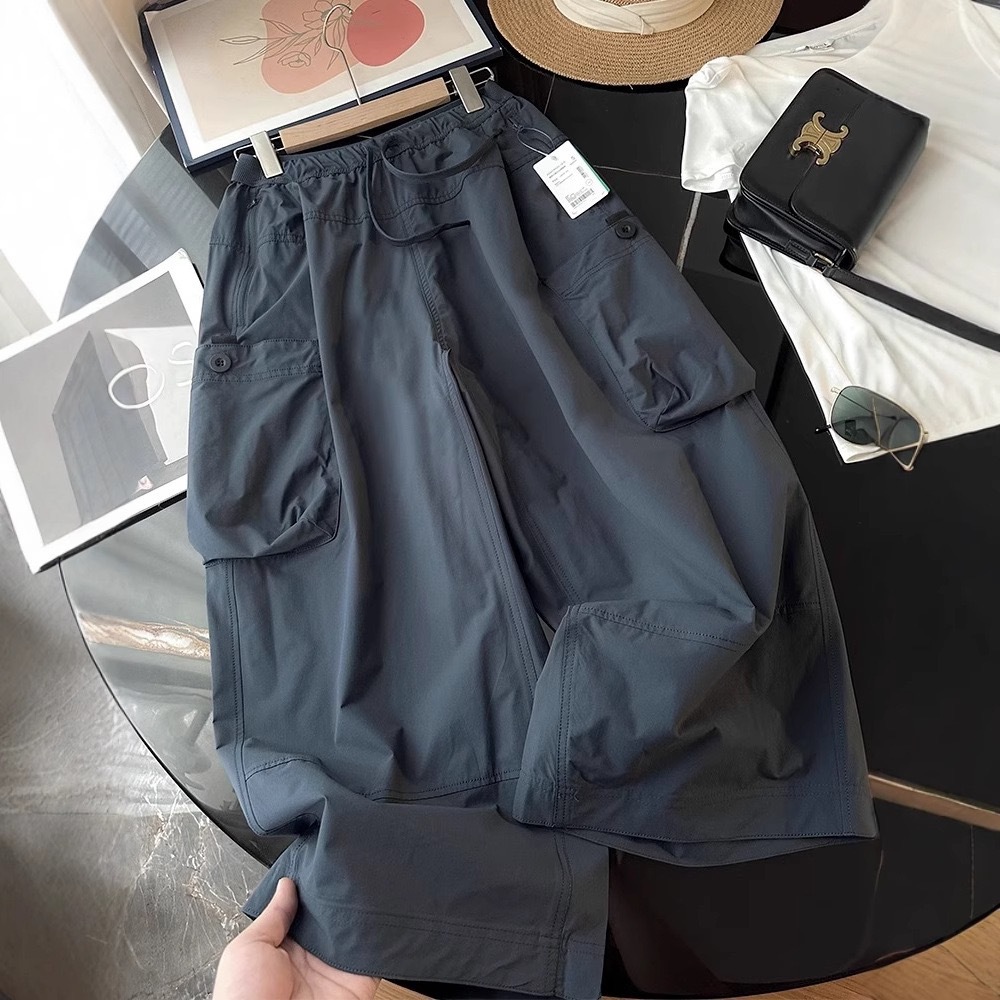 마운틴 스타일~무주 1400+ 경량 우븐 9부 팬츠 신축성 있는 허리 루즈 캐주얼 멀티 포켓 워크웨어 와이드 팬츠
