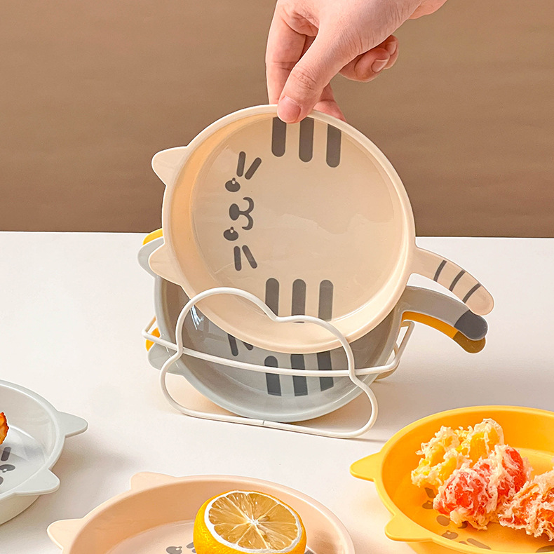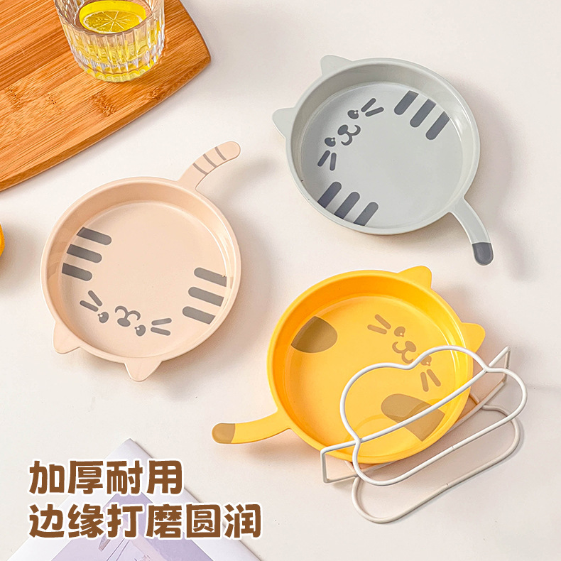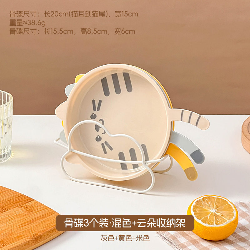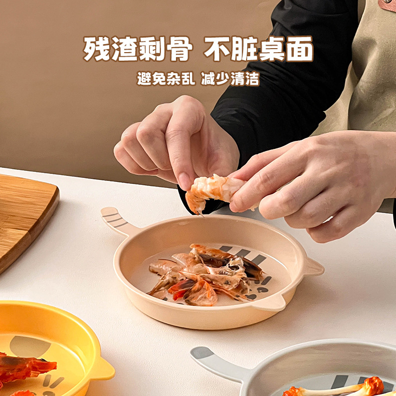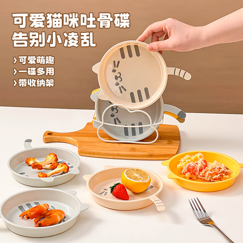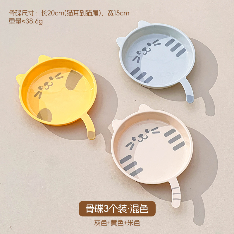 만화 고양이 뼈 뱉는 접시 가정용 플라스틱 식품 플레이트 디저트 과일 플레이트 마이크로파 가열 드롭 방지 테이블 뼈 접시스토어 가기
