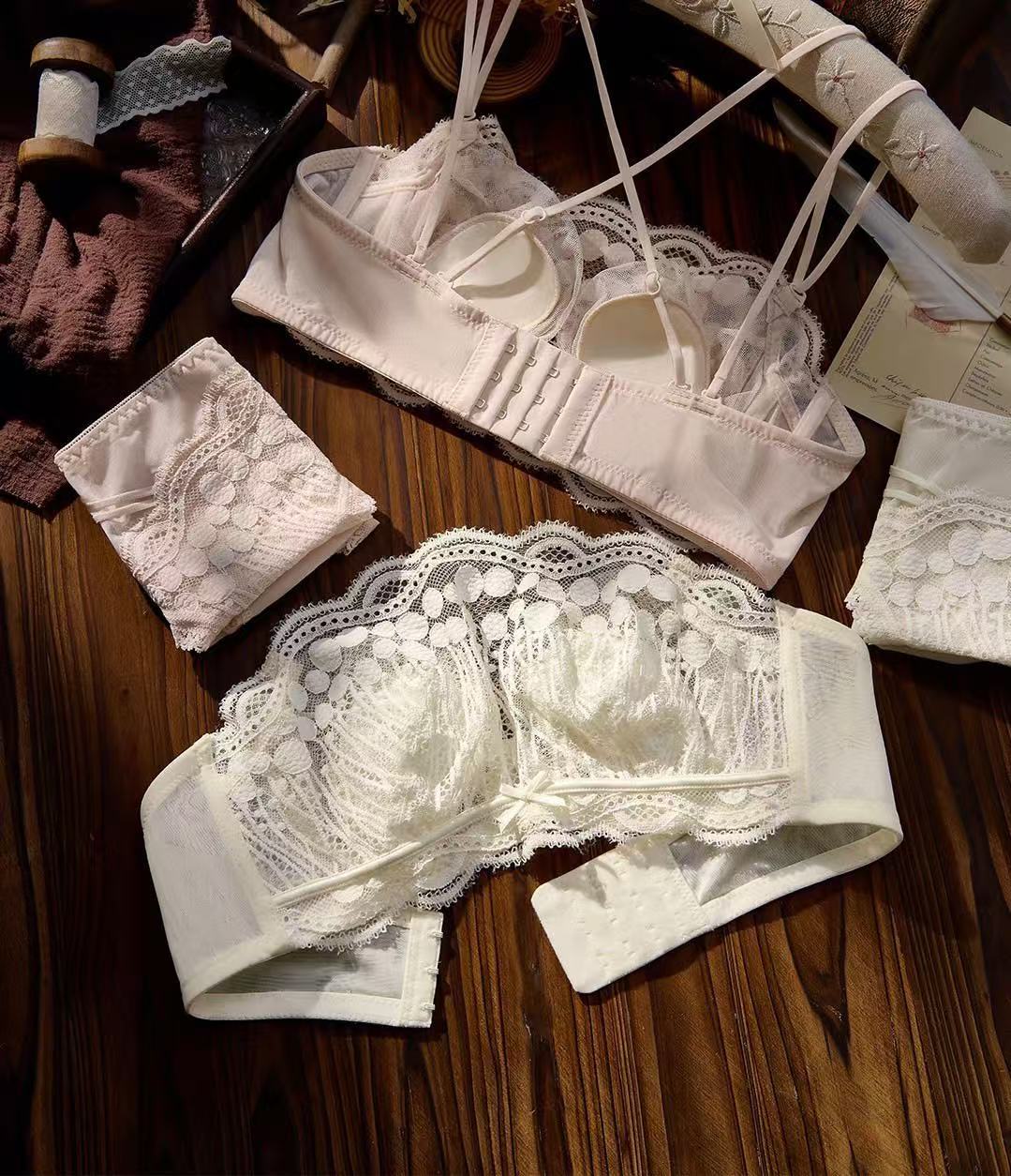 6655 큰 가슴을 가진 여성을 위한 미끄럼 방지 스파게티 스트랩 속옷, 푸쉬업 가슴 감싸기, 노출 방지 튜브 탑, 아름다운 등 브라 세트