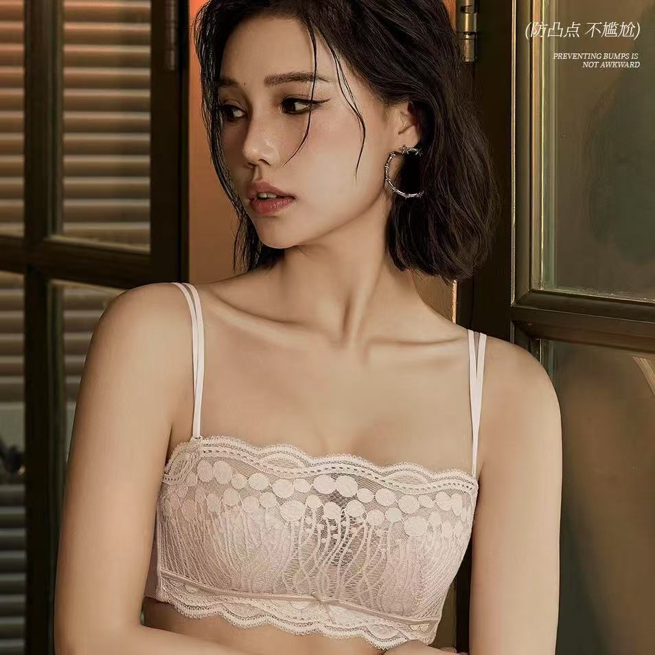 6655 큰 가슴을 가진 여성을 위한 미끄럼 방지 스파게티 스트랩 속옷, 푸쉬업 가슴 감싸기, 노출 방지 튜브 탑, 아름다운 등 브라 세트스토어 가기