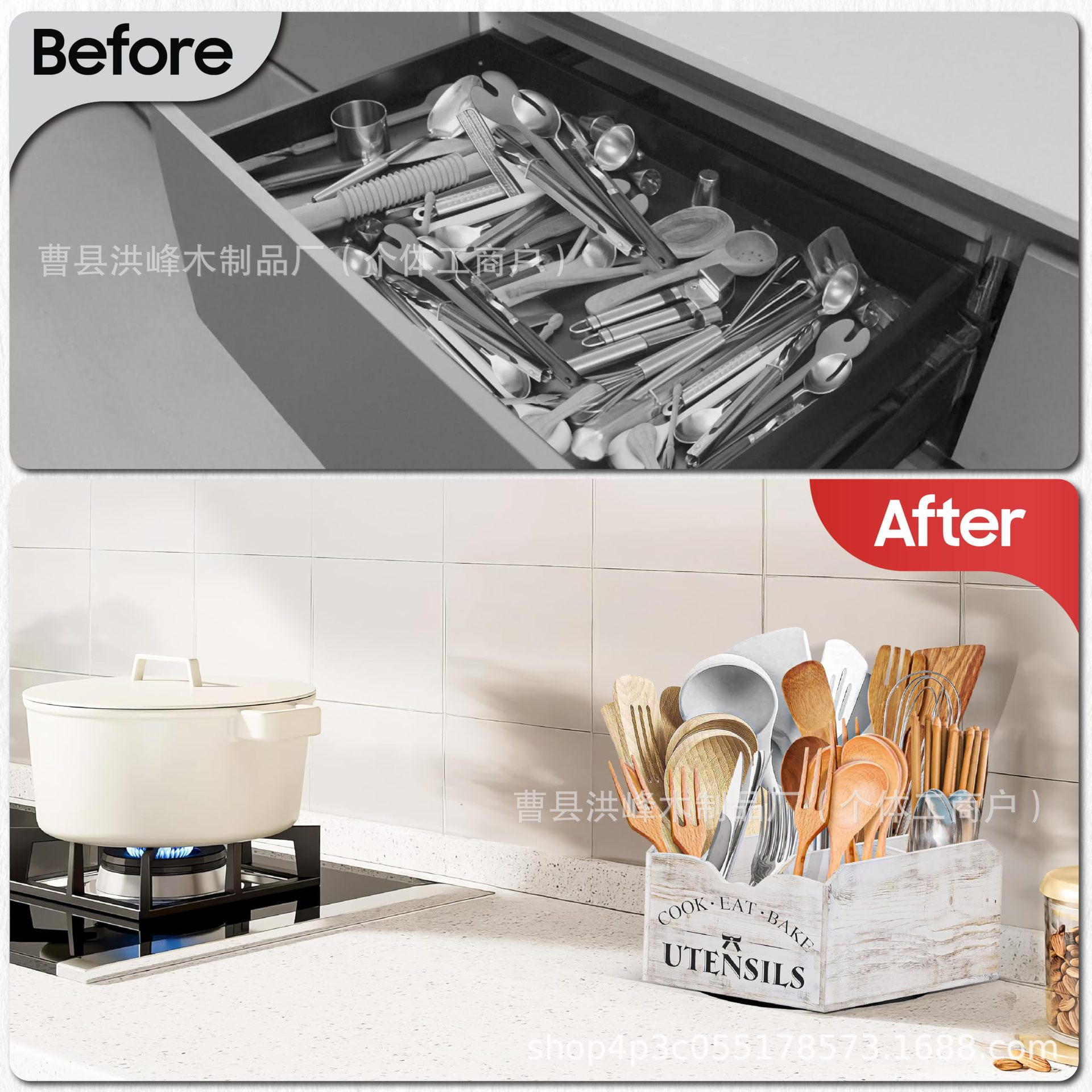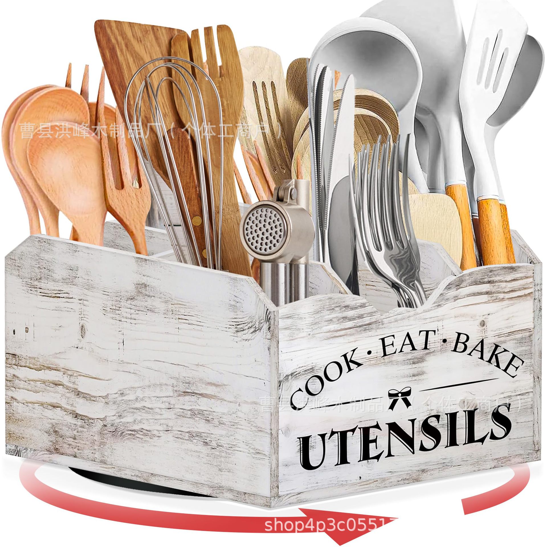 단단한 나무 회전식 식기 보관 상자 나무 식기 보관 상자 복고풍 소박한 스타일 회전식 식기 보관 상자스토어 가기