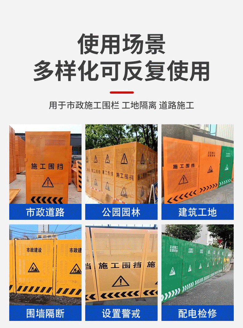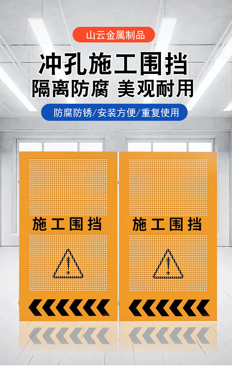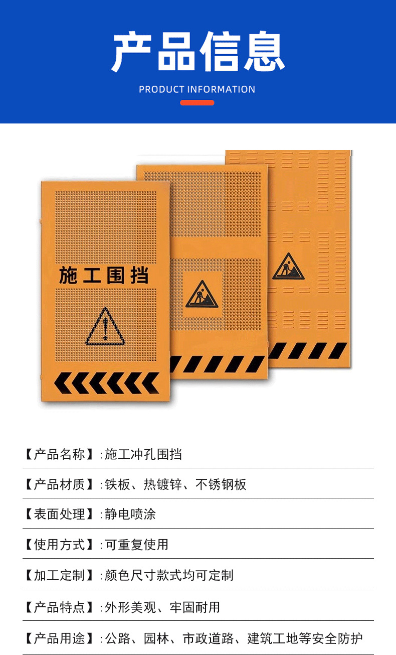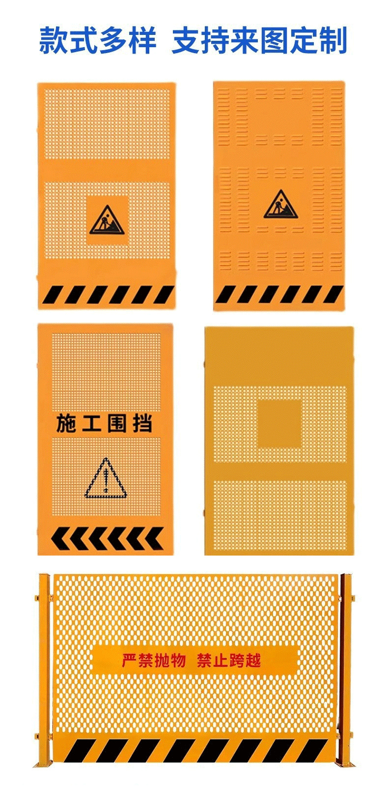 도로 건설 울타리 엔지니어링 건물 이동식 안전 경고 아연 도금 노란색 방풍 구멍 샘플 변경 가능스토어 가기