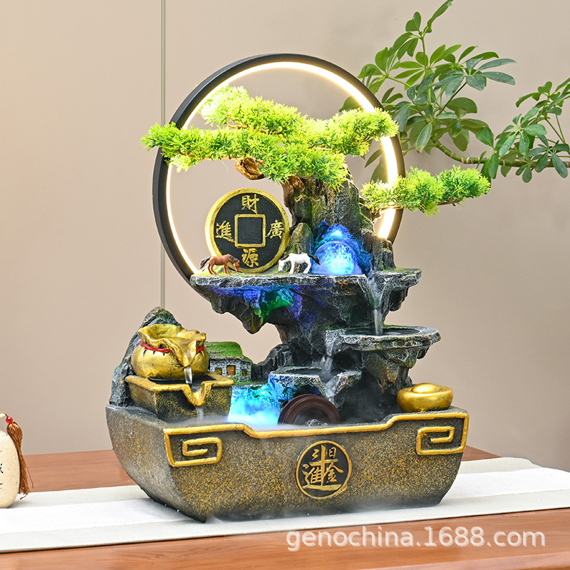 거실 행운의 보물 그릇, 수조, 석가산 장식품, 산악 순환 물, 오픈 워터 휠, 풍수 회전 공-5