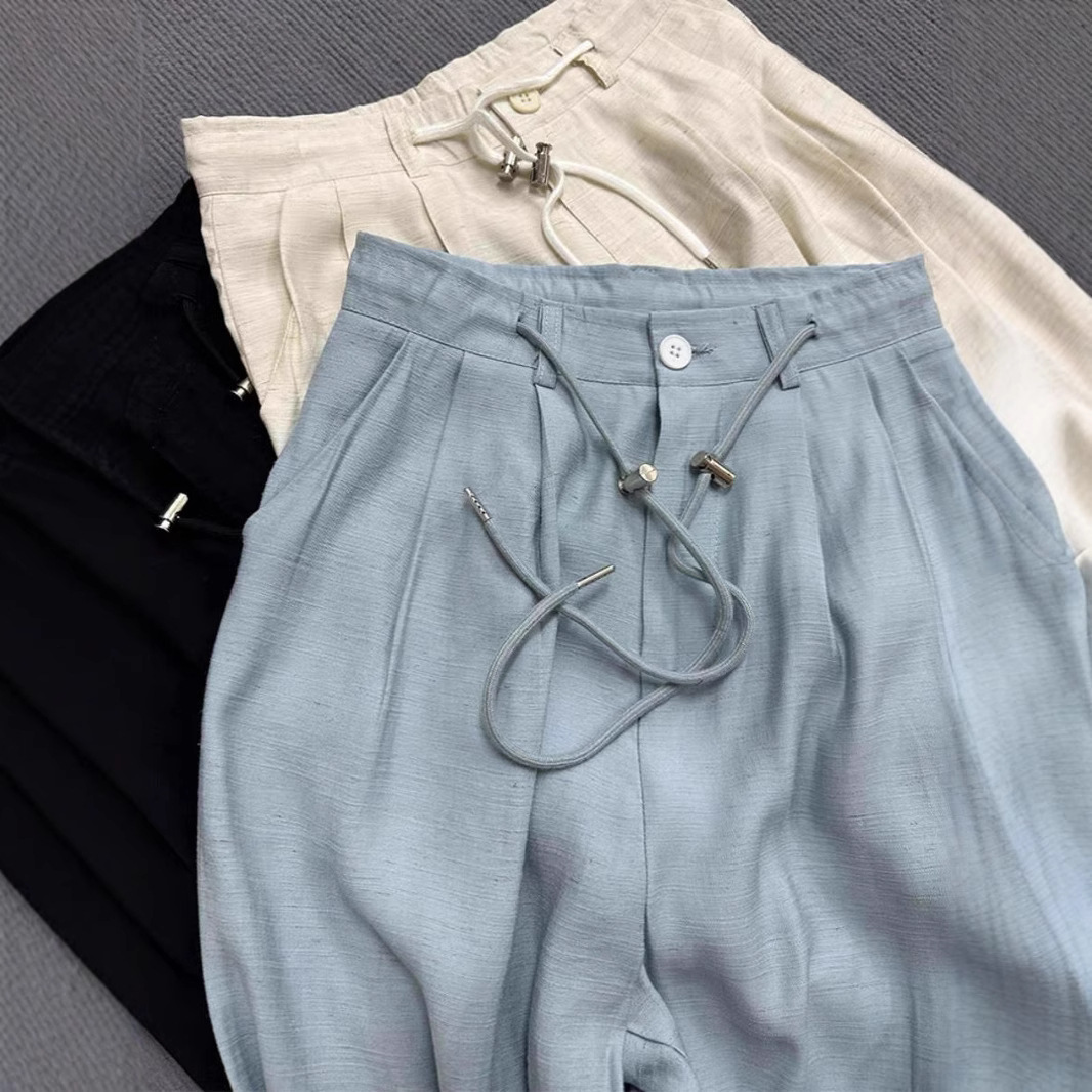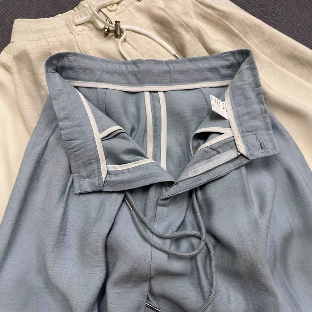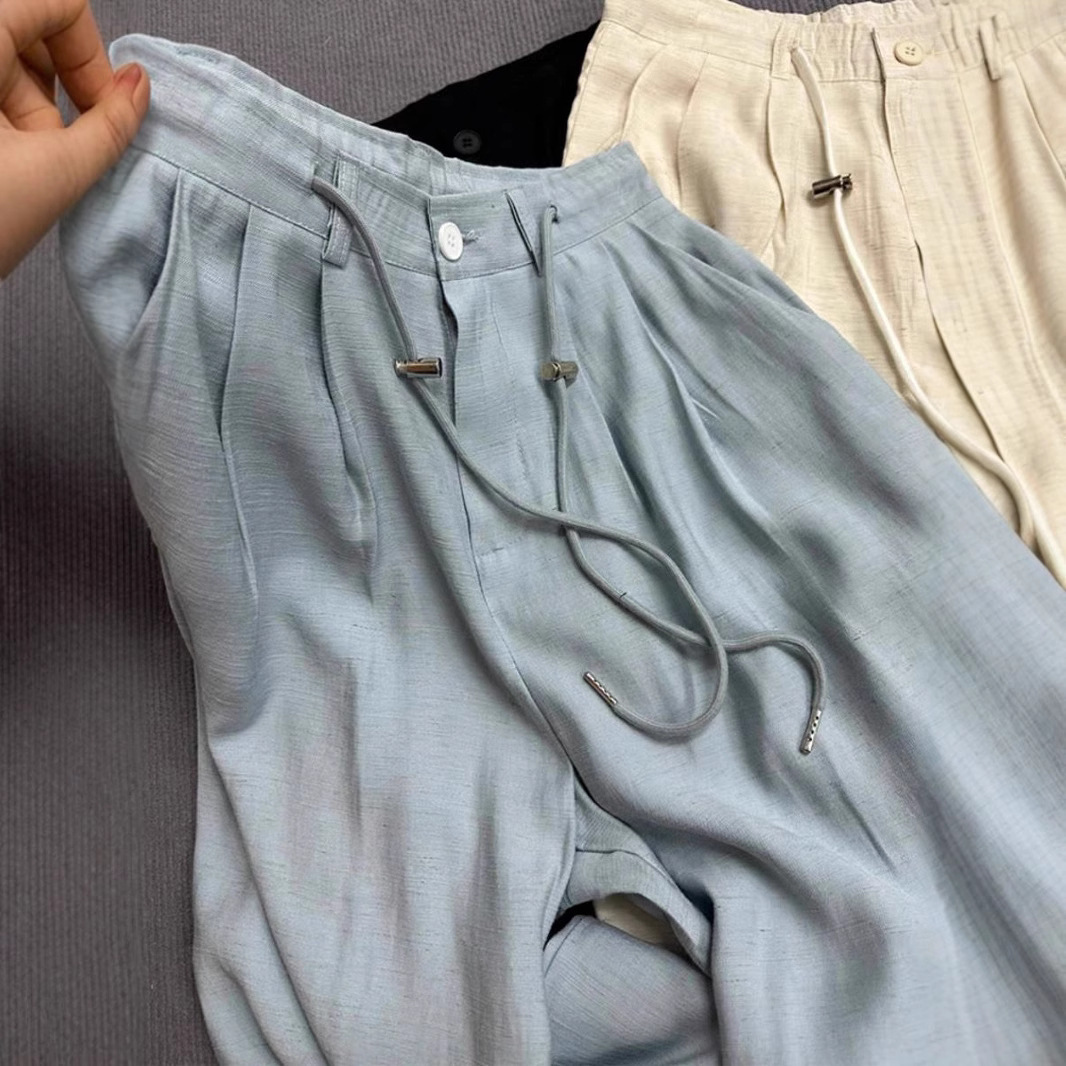 차오 파열 추천! 파란색 넓은 다리 바지 배 모양의 몸 슬리밍 경량 통기성 얇은 넓은 다리 바지 여름