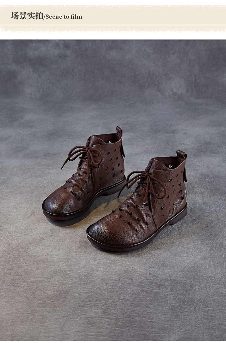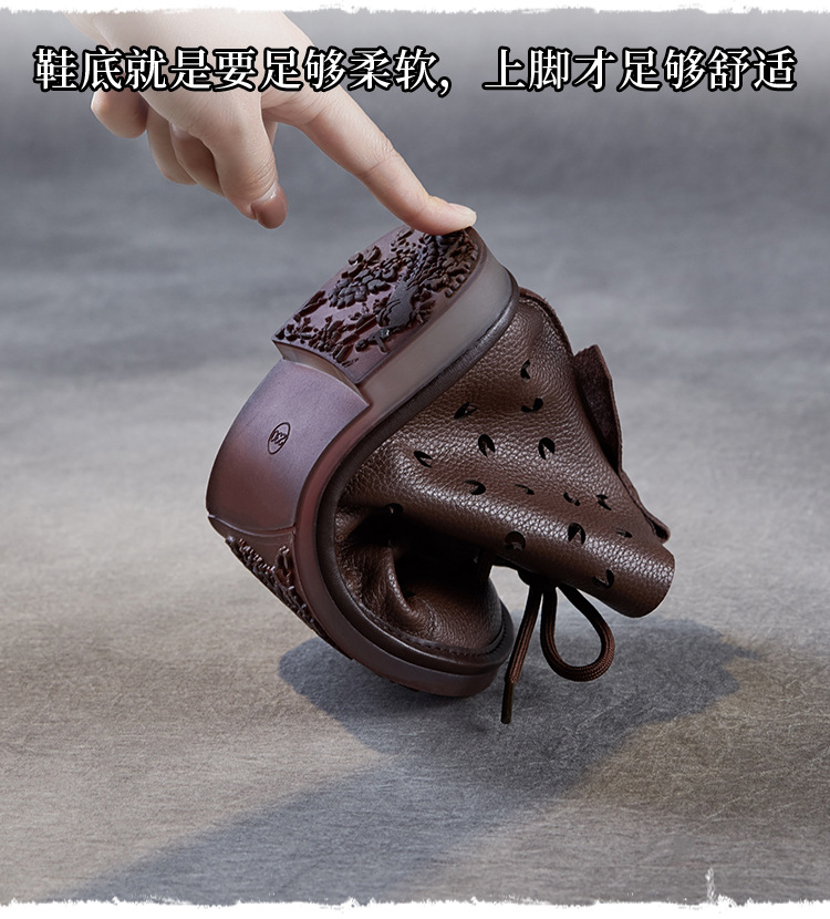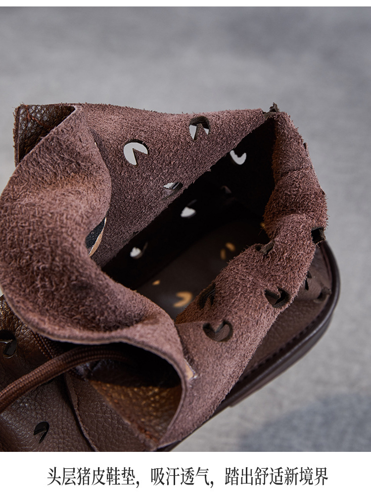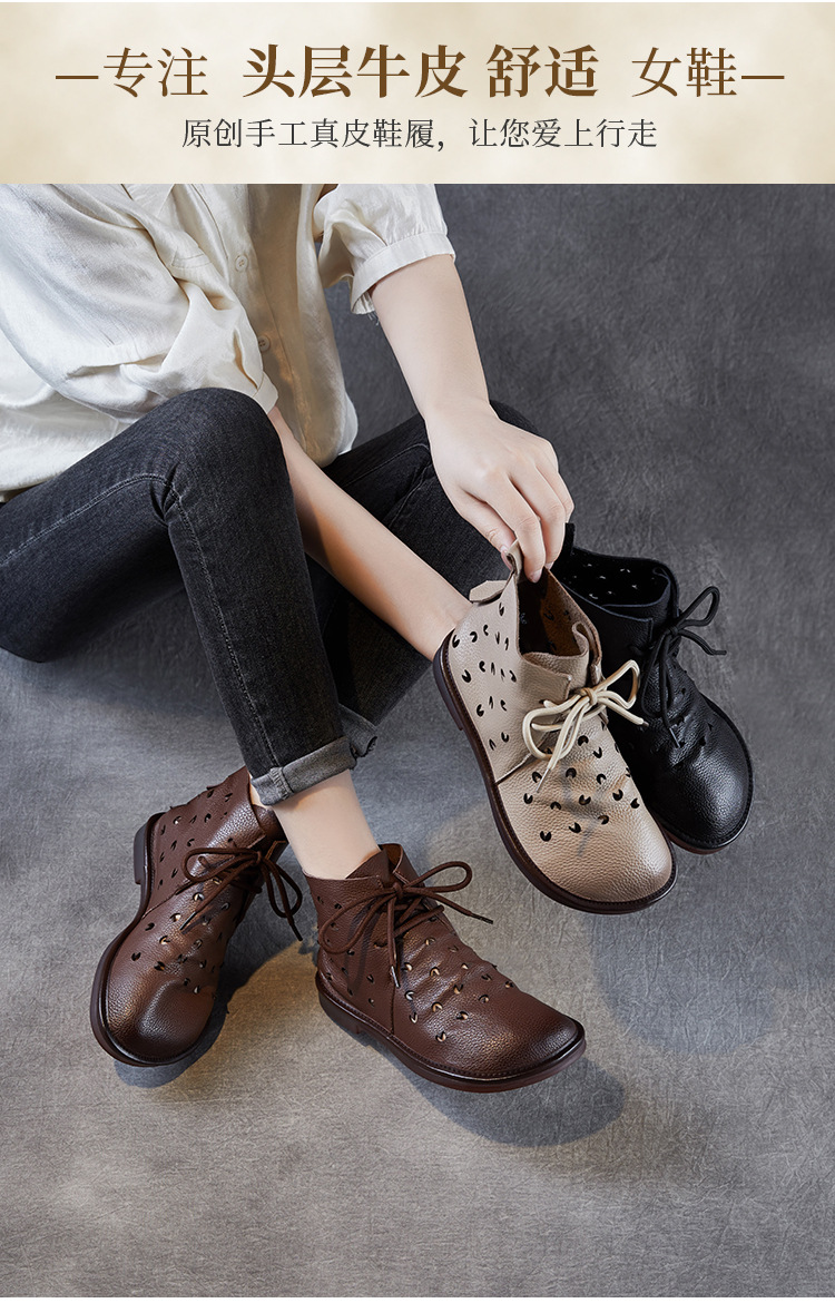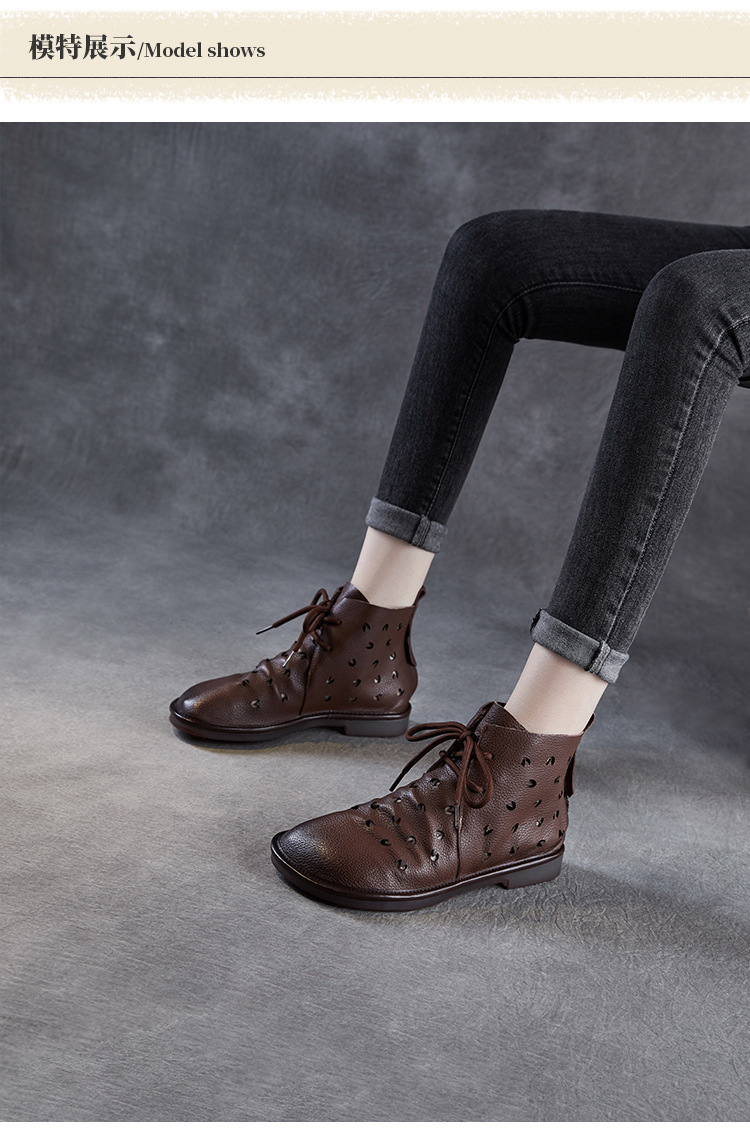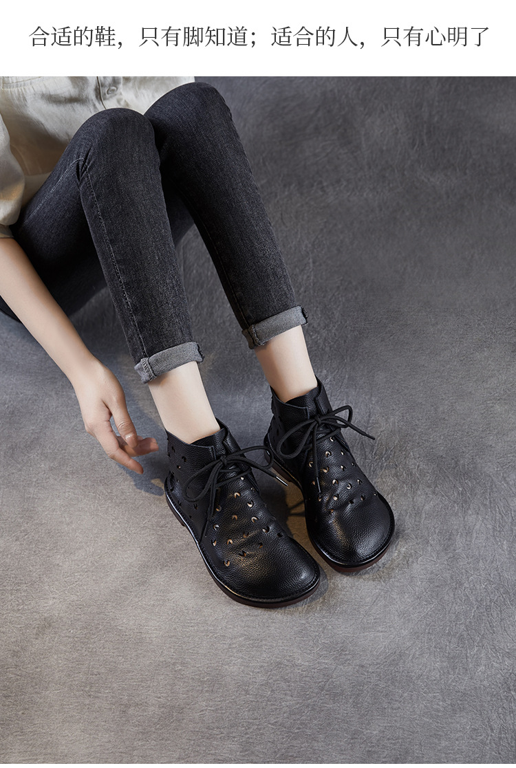 정품 가죽 플랫 하단 2025 여름 새로운 짧은 부츠 쇠고기 텐더 소프트 하단 엄마 댄스 부츠 플러스 사이즈 홀 여성용 부츠스토어 가기