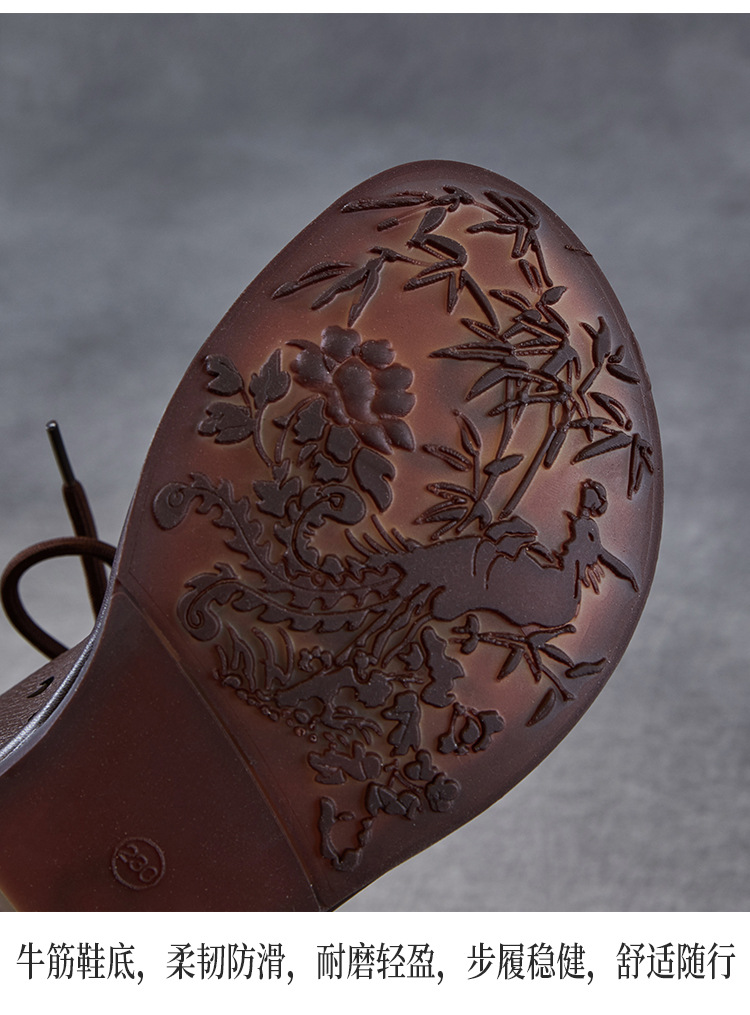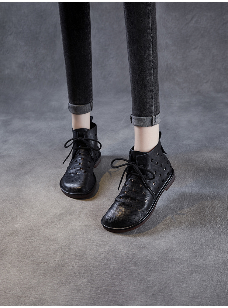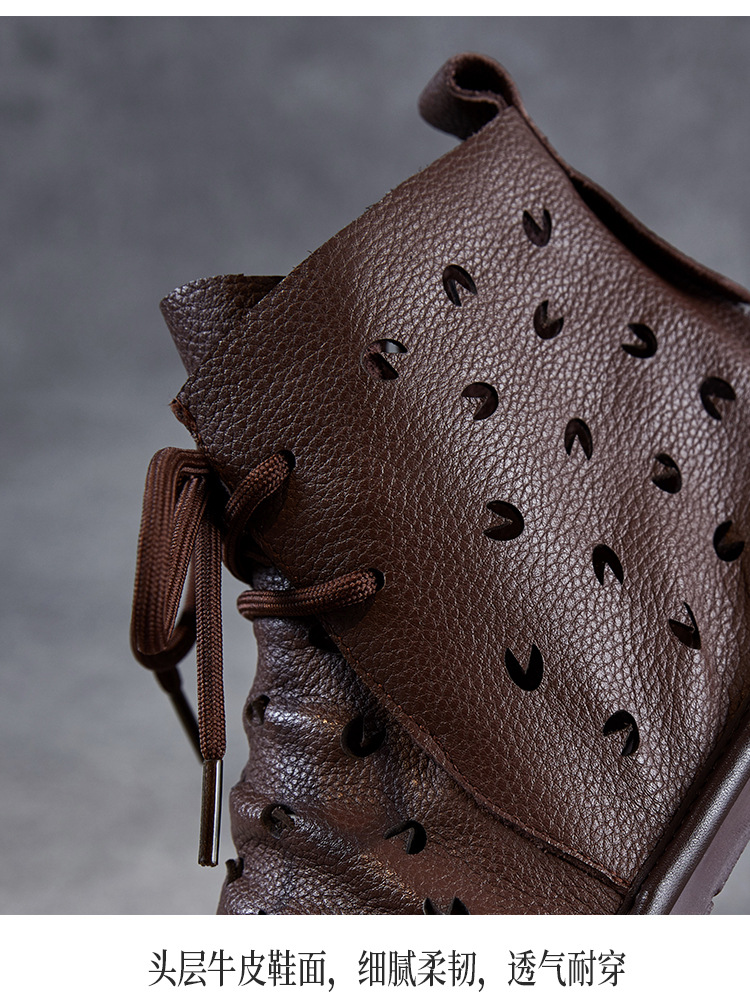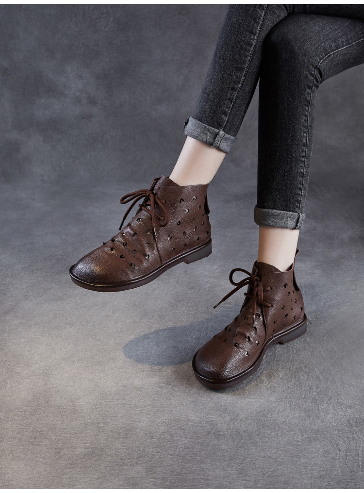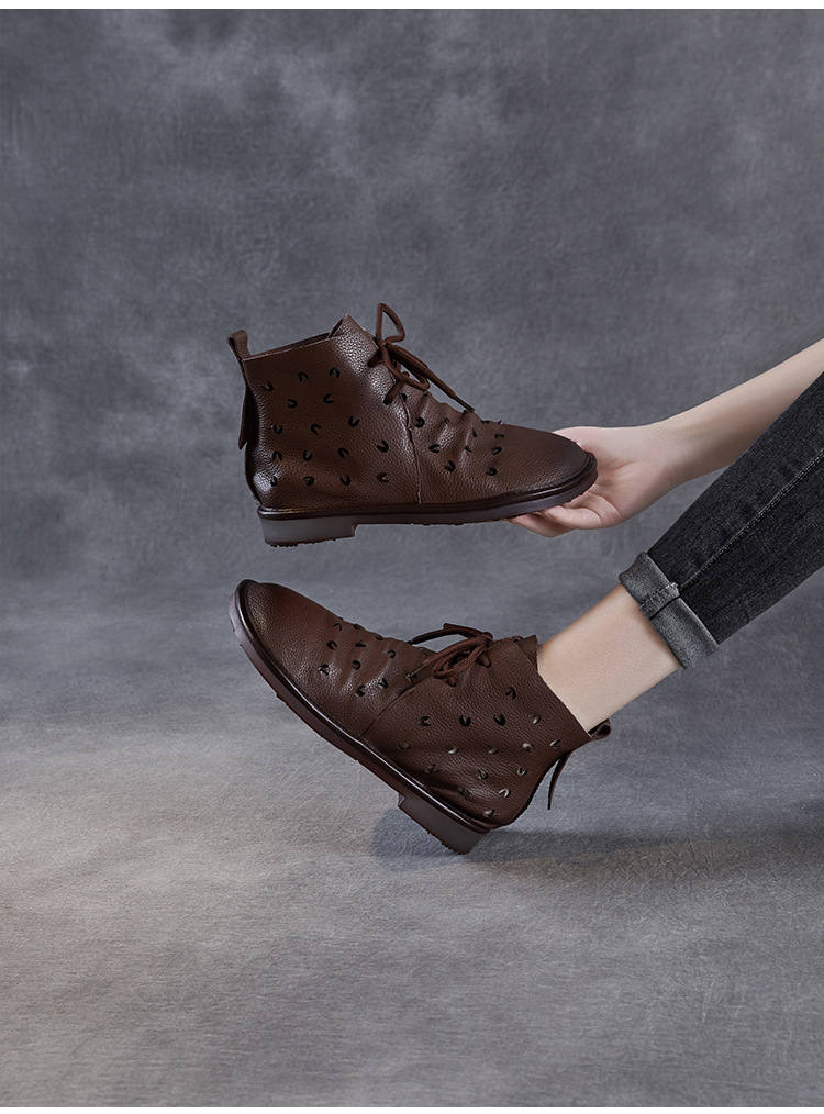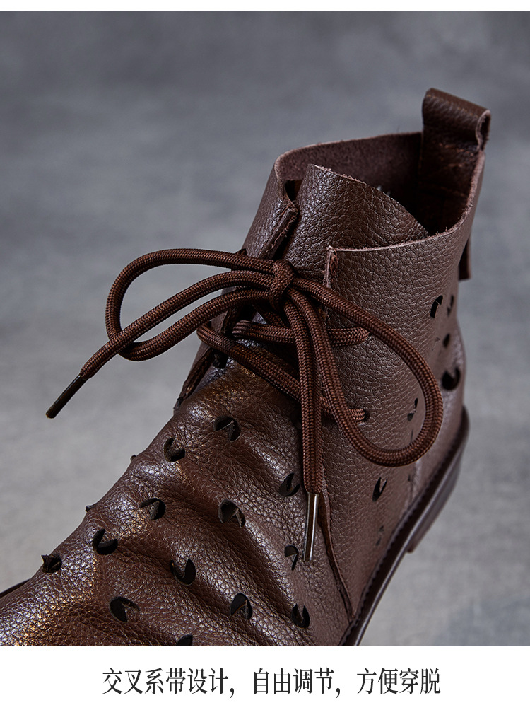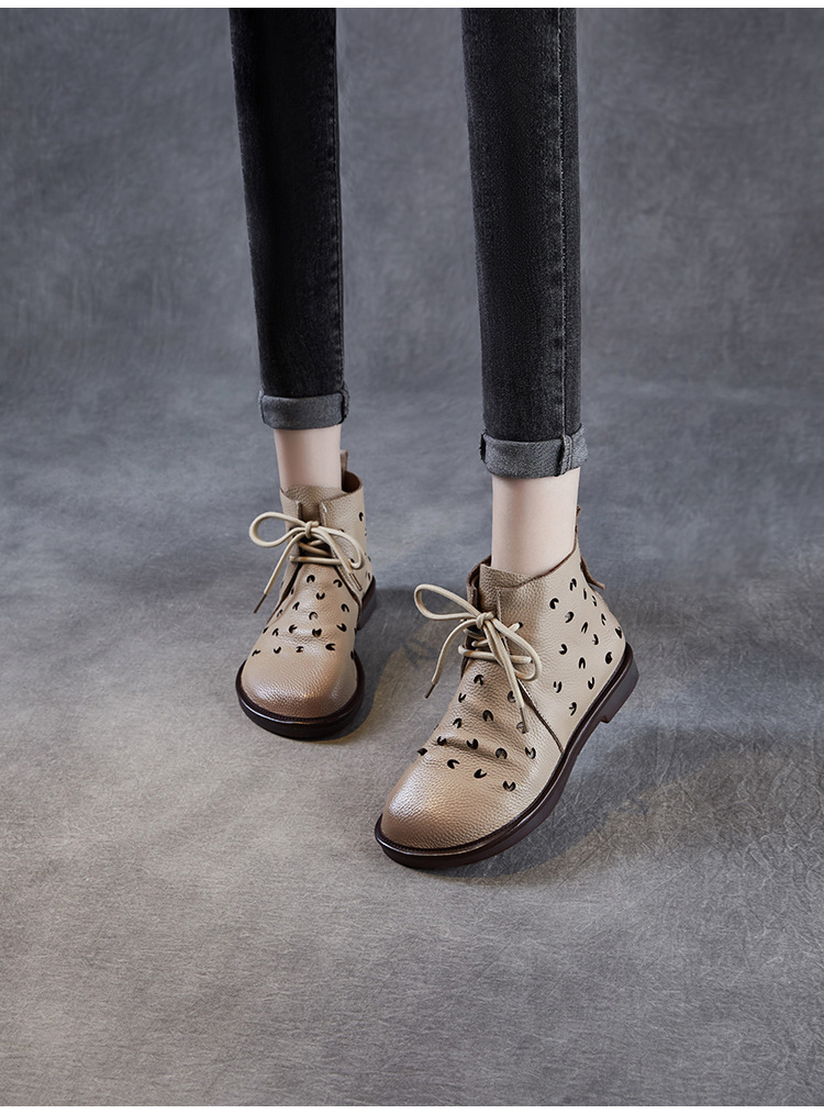 정품 가죽 플랫 하단 2025 여름 새로운 짧은 부츠 쇠고기 텐더 소프트 하단 엄마 댄스 부츠 플러스 사이즈 홀 여성용 부츠스토어 가기