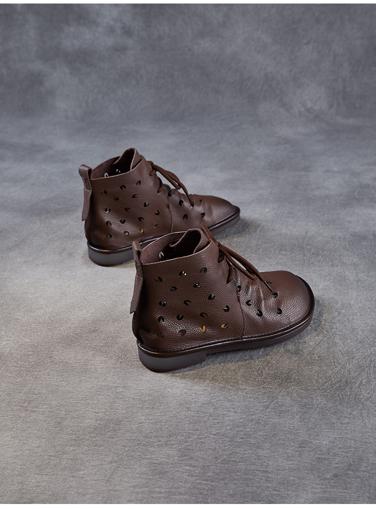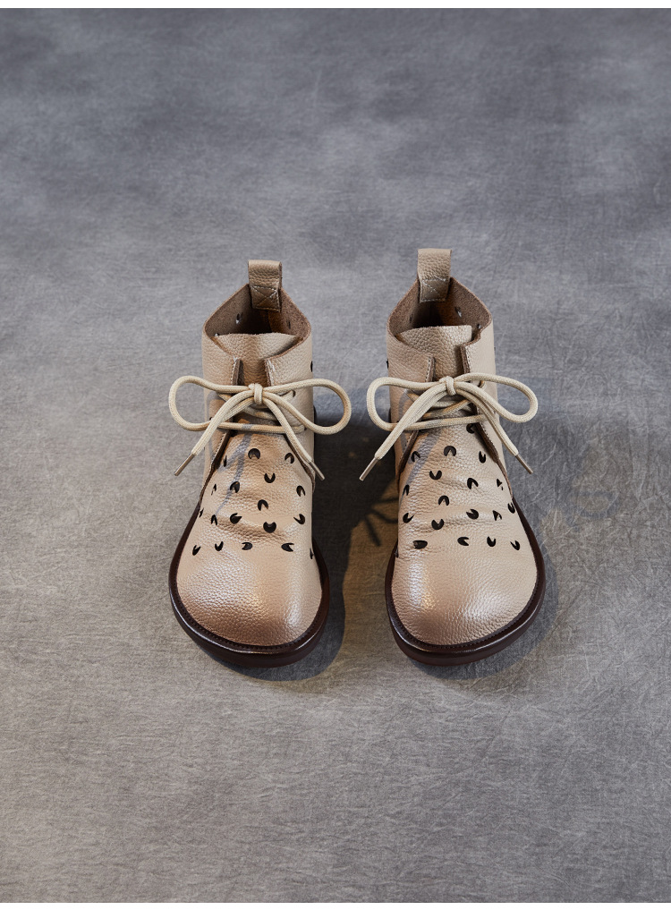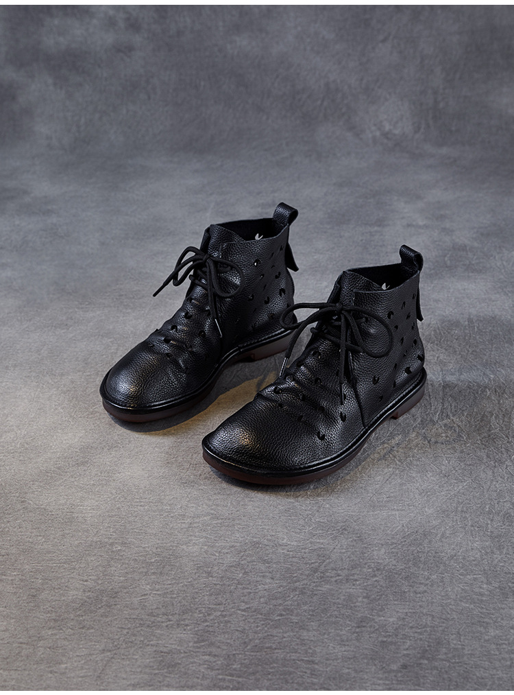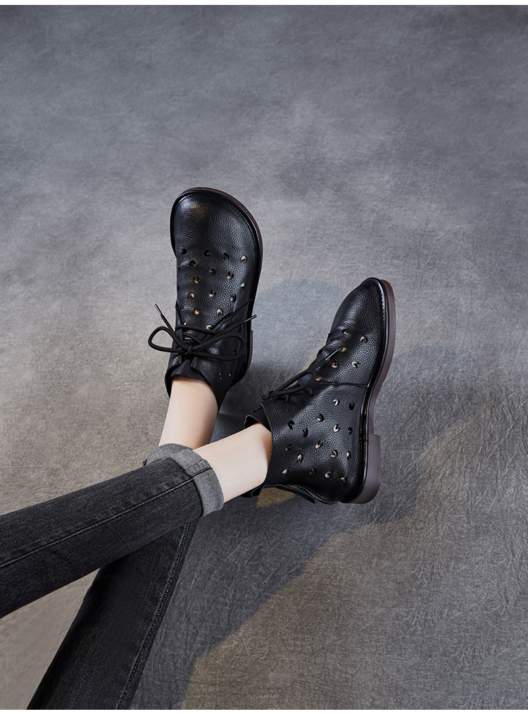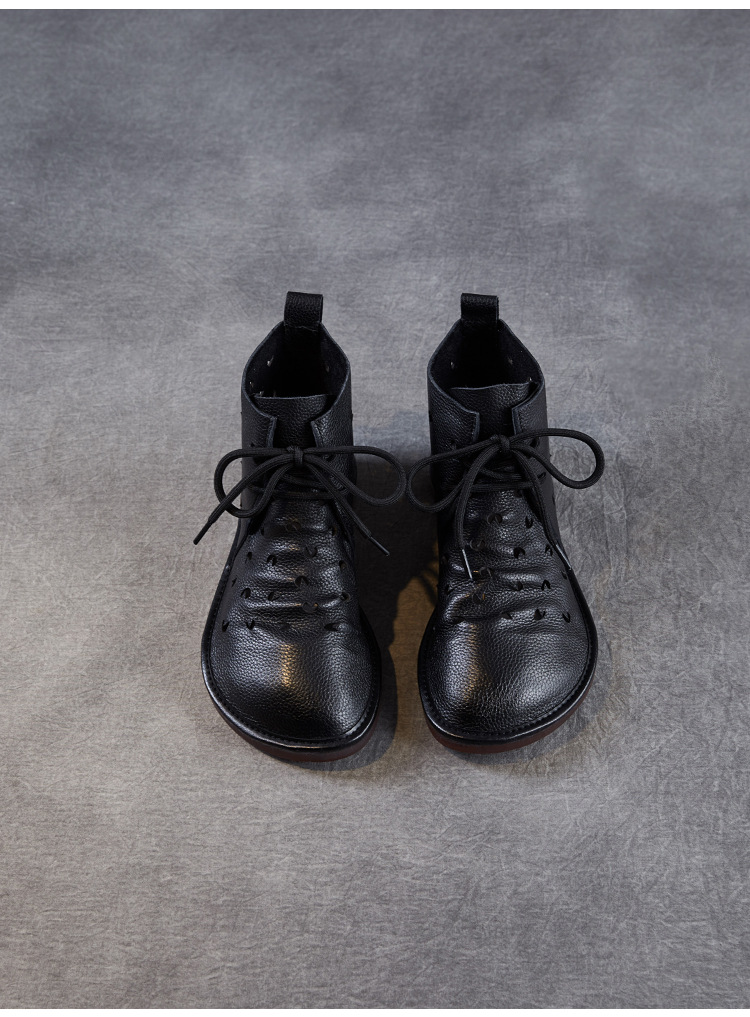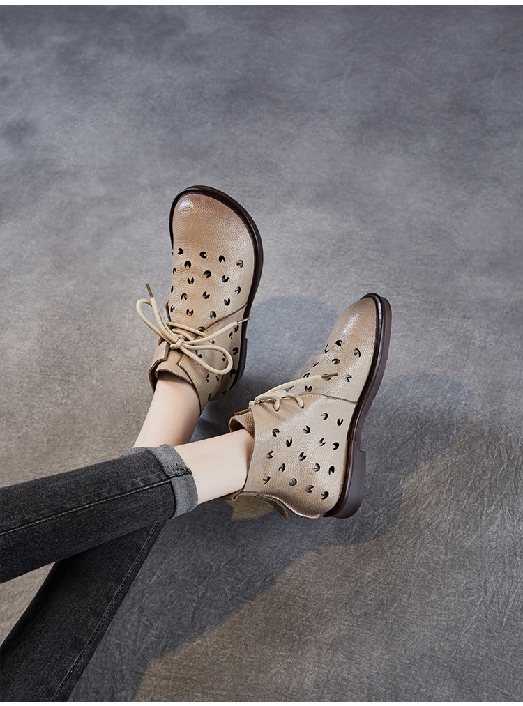 정품 가죽 플랫 하단 2025 여름 새로운 짧은 부츠 쇠고기 텐더 소프트 하단 엄마 댄스 부츠 플러스 사이즈 홀 여성용 부츠스토어 가기
