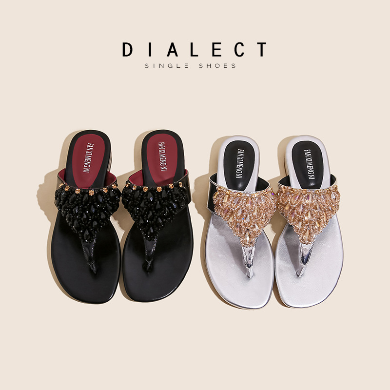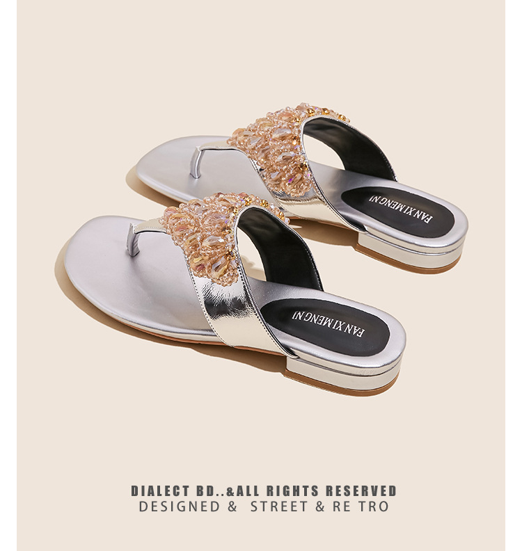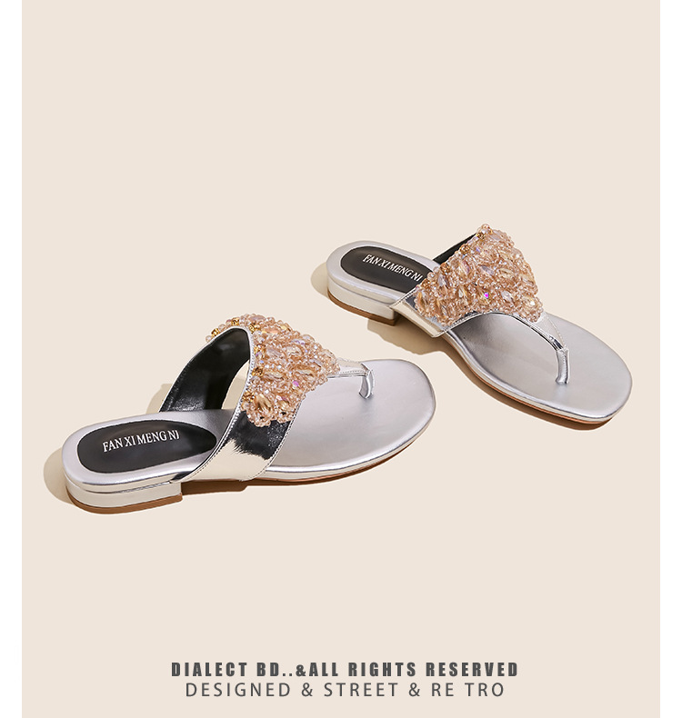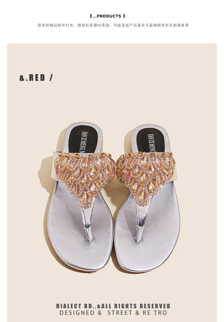 A2523-1 여성용 아웃도어용 슬리퍼, 2025년 여름 신상, 요정풍 큐빅 비치 플랫 샌들스토어 가기
