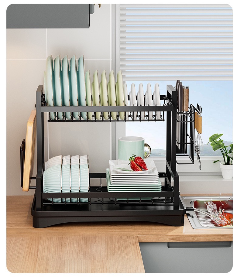 국경을 넘는 주방 수납 선반, 접시 선반, 다기능 조리대 배수 선반, 이중층 가정용 접시, 칼, 도마 수납 선반스토어 가기