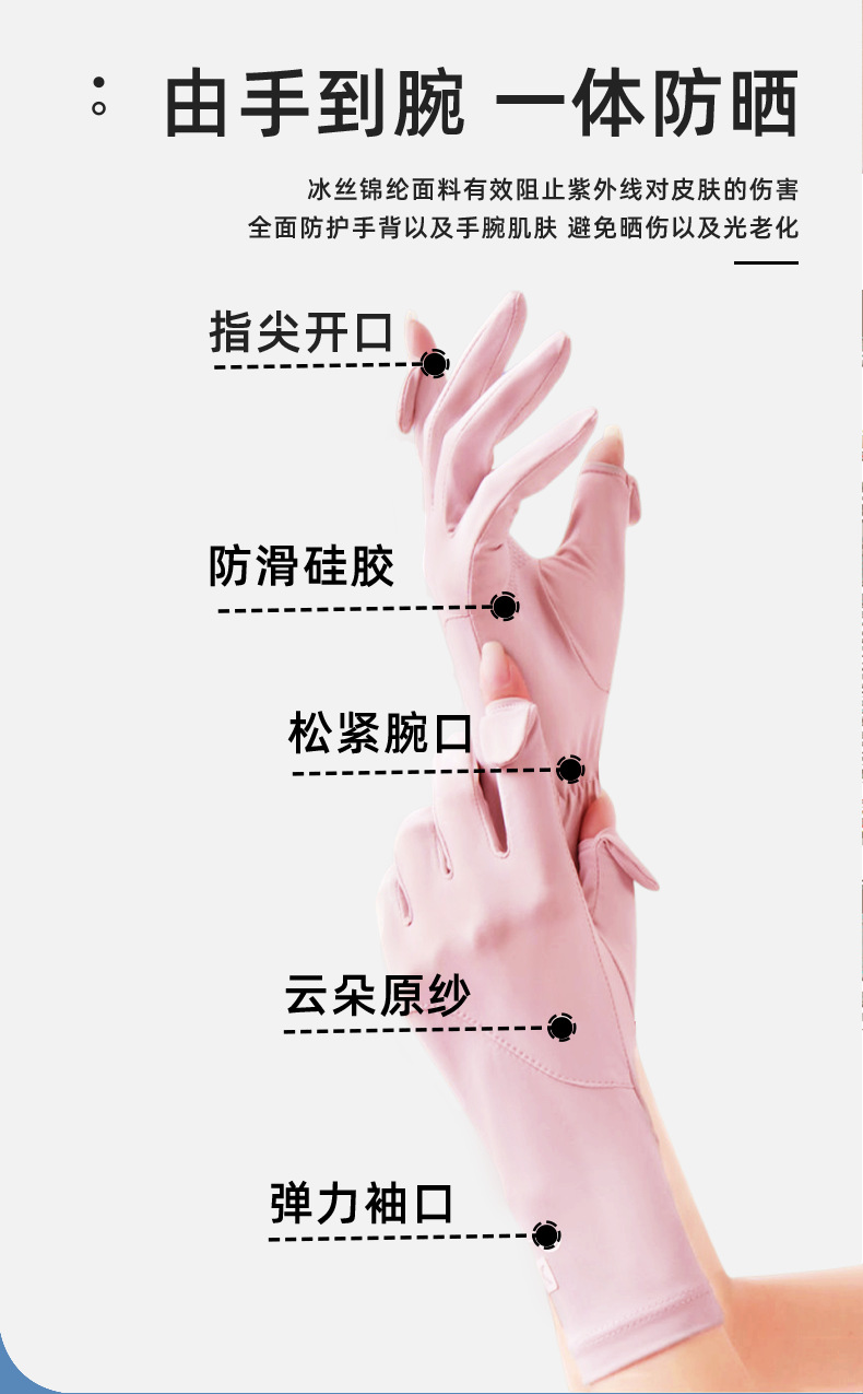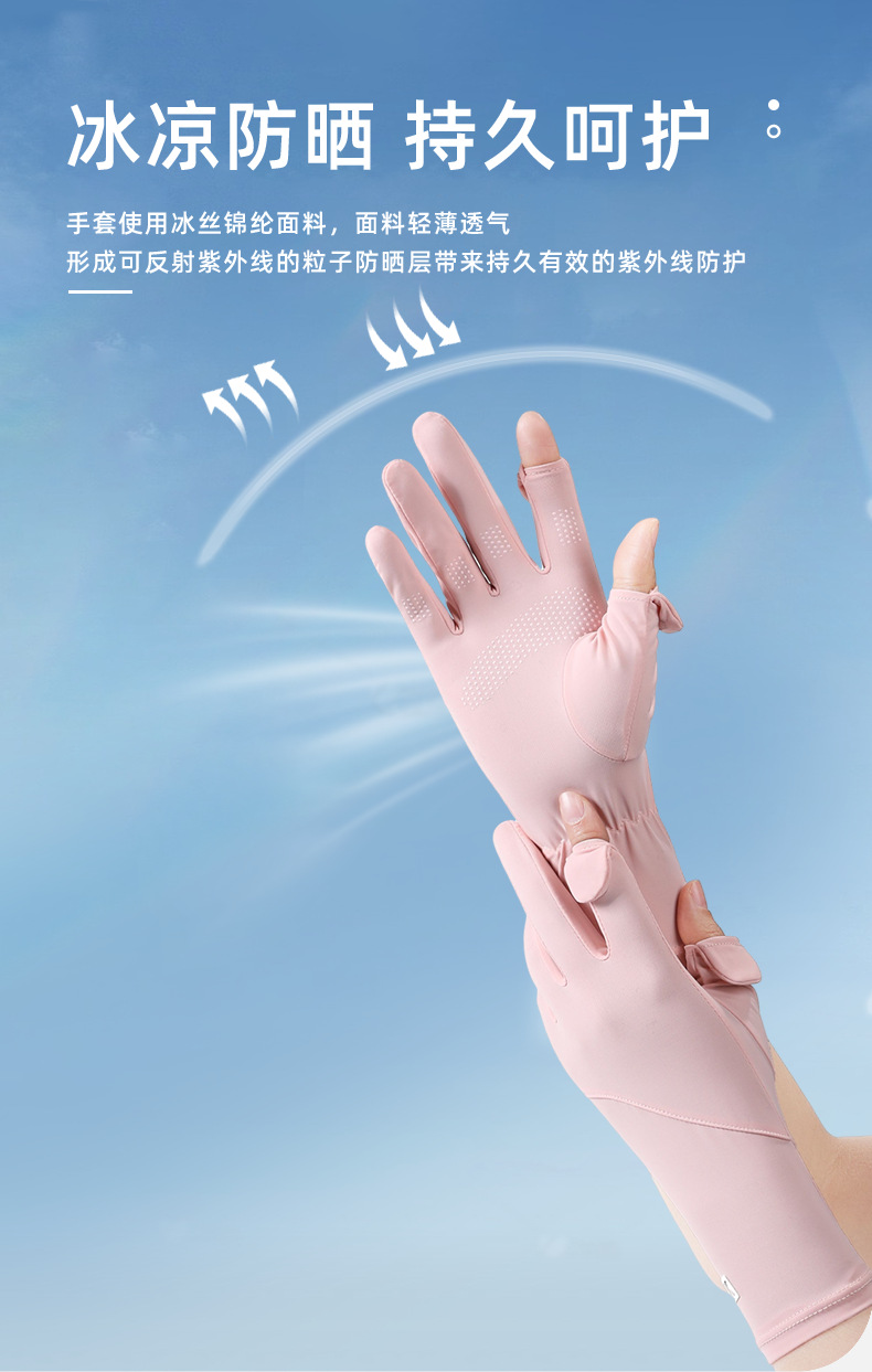 여성용 자외선 차단 장갑, 자외선 차단, 얼음 실크 터치 스크린, 야외 미끄럼 방지 자전거, 여름용 얇은 운전 및 사이클링 장갑